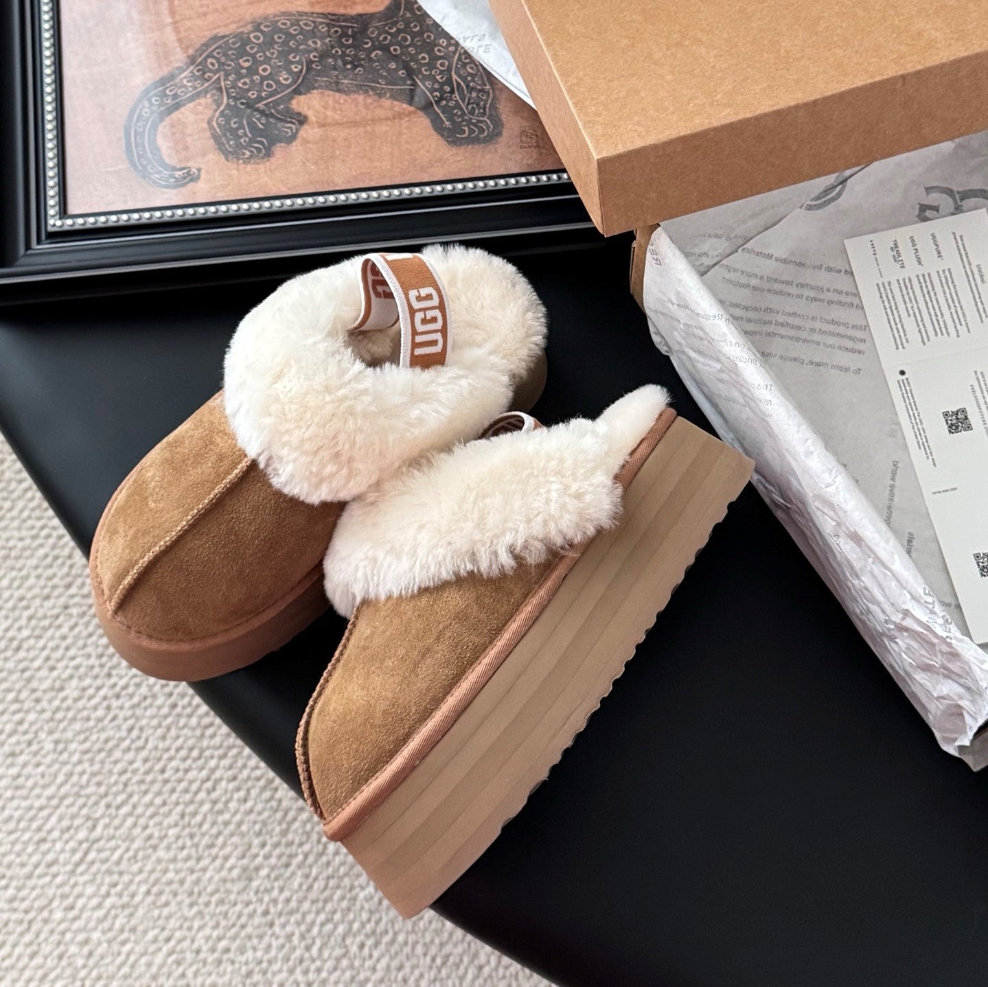 UGG Disquette Slippers Brown White Wool Suede 508051