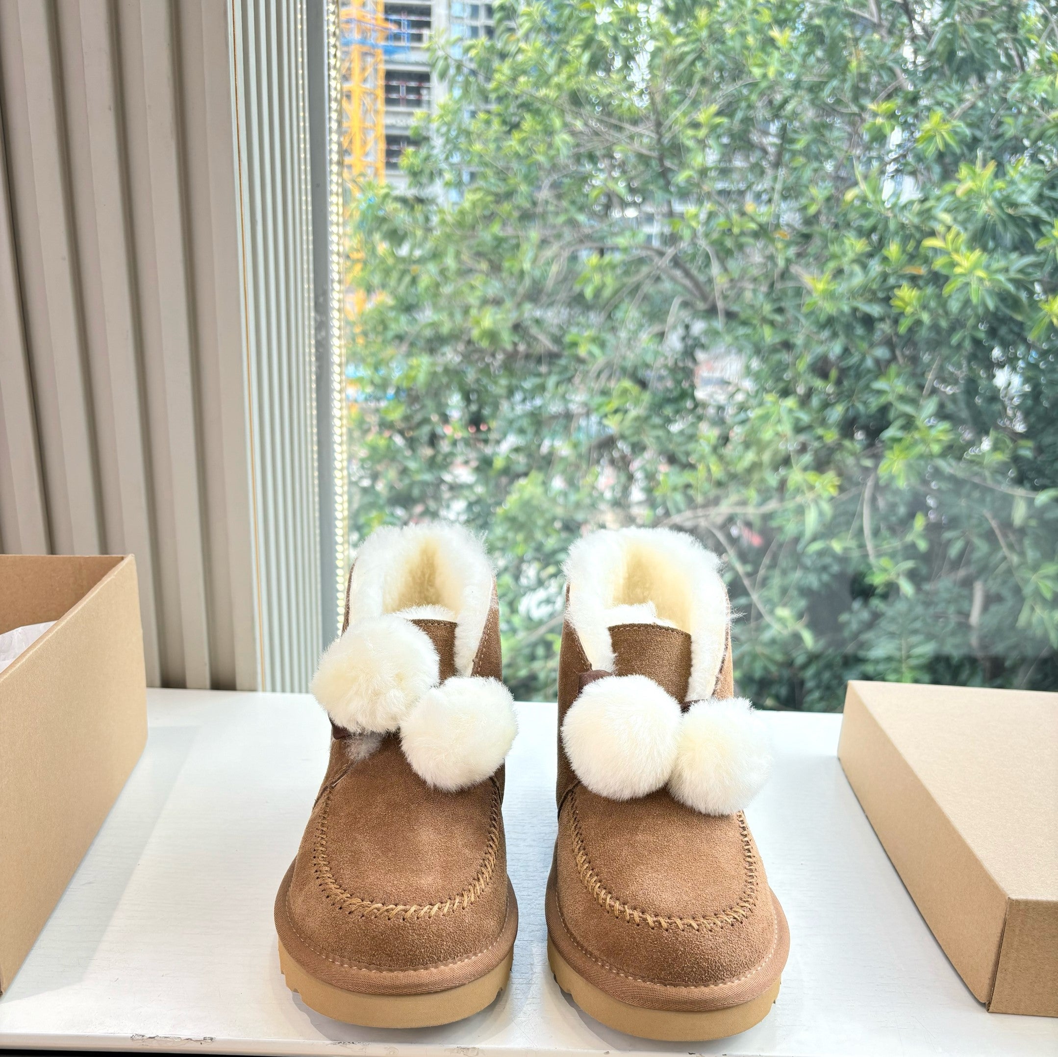 UGG Kallen Boots Brown White Wool Suede 506603