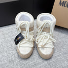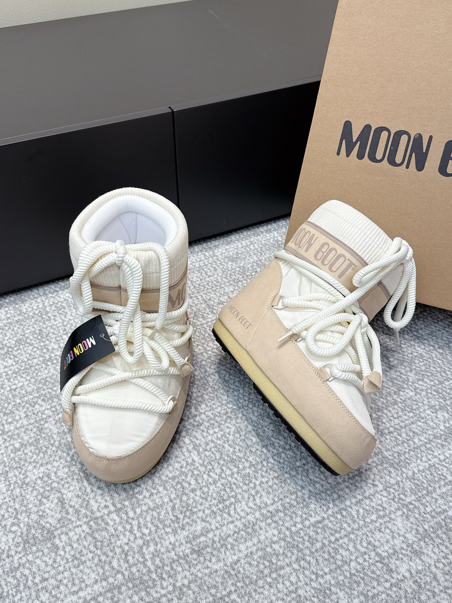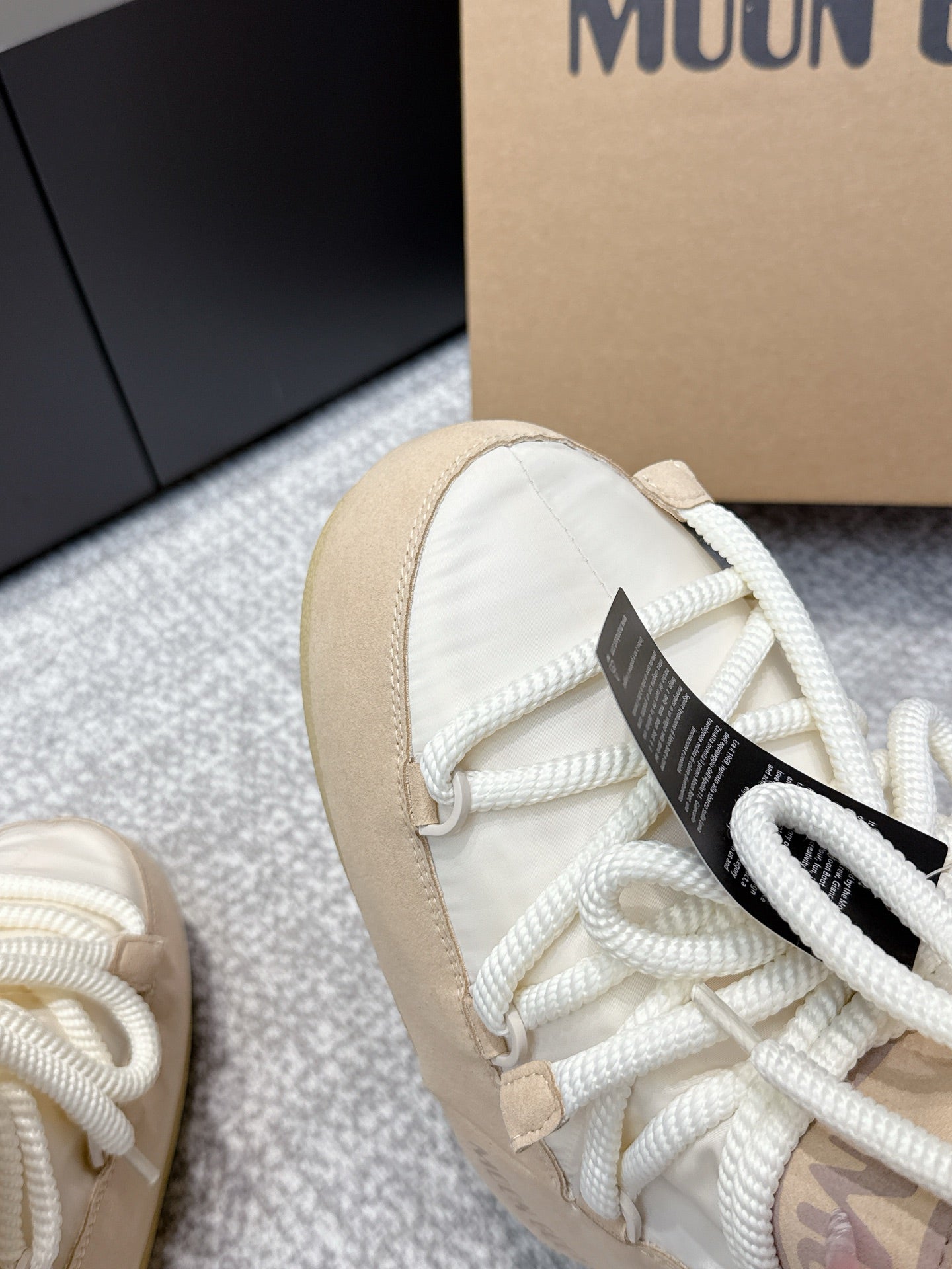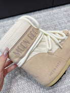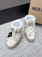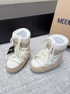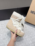 Moon Boot Icon White Beige Geometric Print Leather Cavas 515585