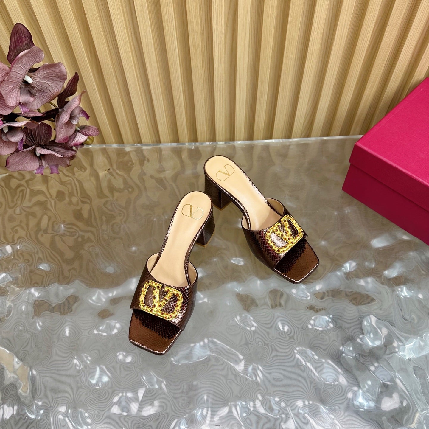 VT 25 Vlogo Mule Brown Snakeskin Leather