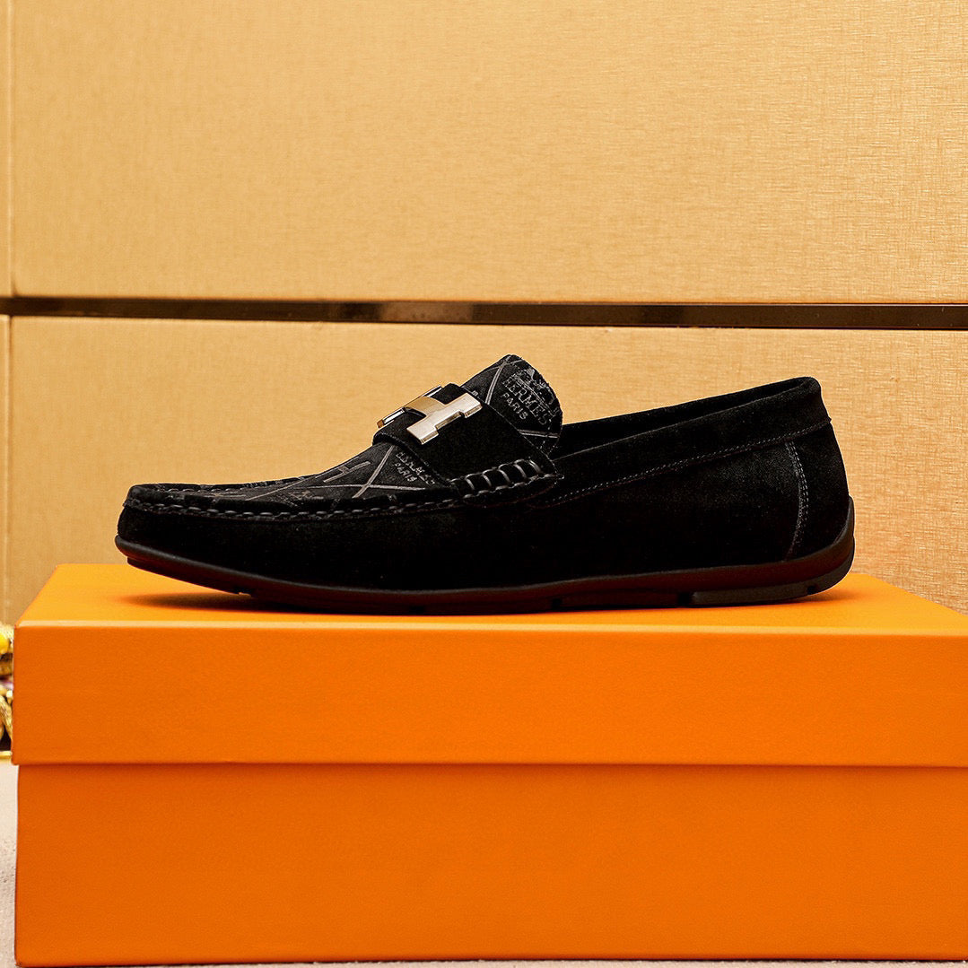 HM Men's Moccasins Loafer Black Calfskin Embossed 710912