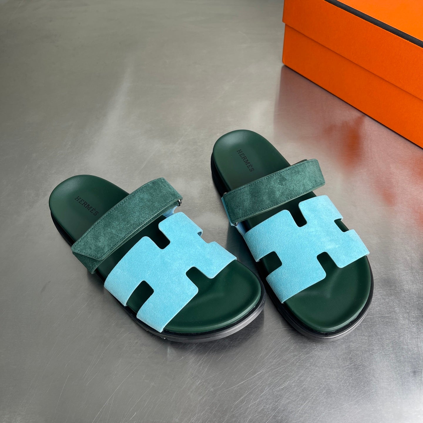 HM Men's Chypre Sandals Blue Green Suede 741432