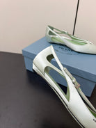 CUT-OUT BALLERINA FLAT IN CHETWODE GREEN SATIN ATTACHED BEAD BUCKLE