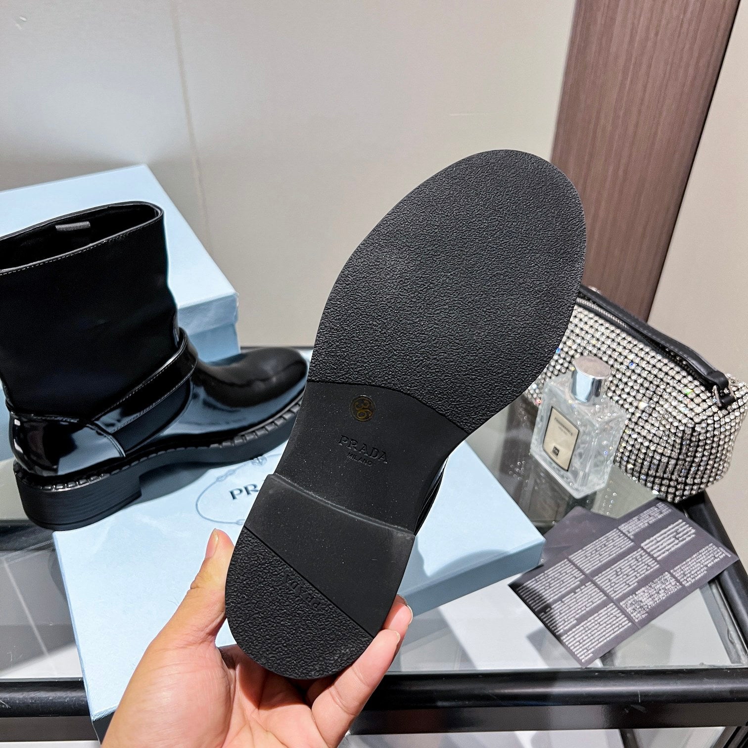 PRA MONOLITH BRUSHED BOOTIES GLOSSY BLACK CALFSKIN