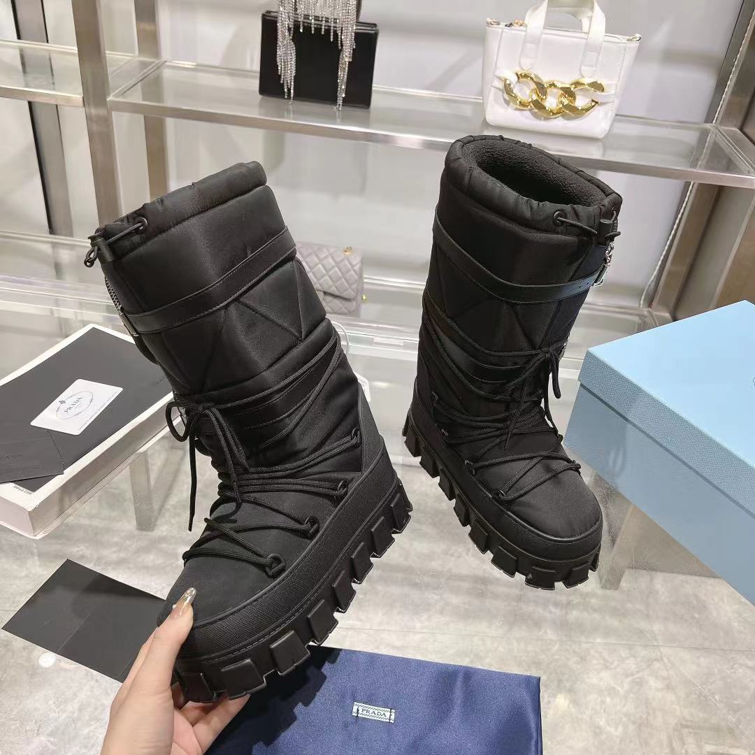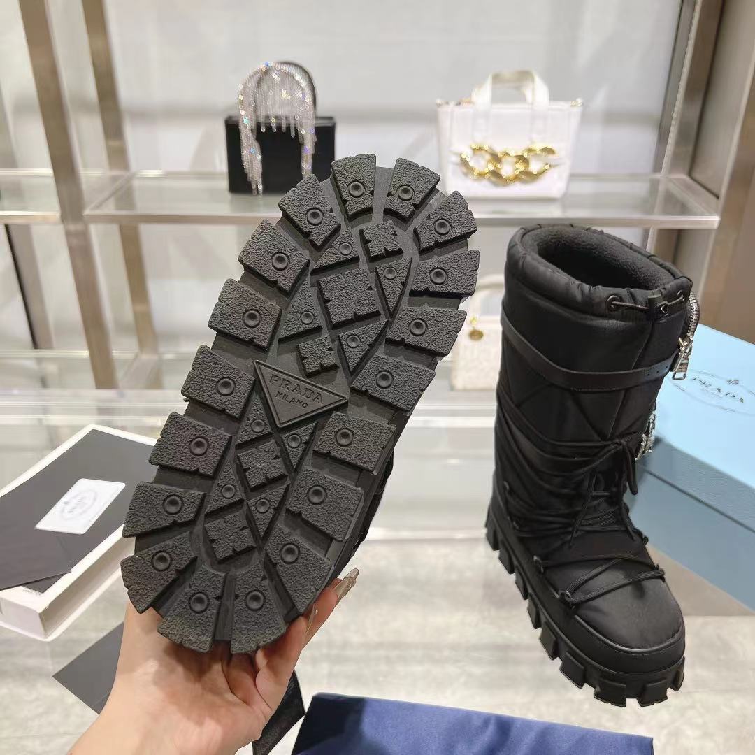 PRA MONOLITH BRUSHED AND RE-NYLON BOOTS WITH POUCH TWINKLE BLACK CALFSKIN