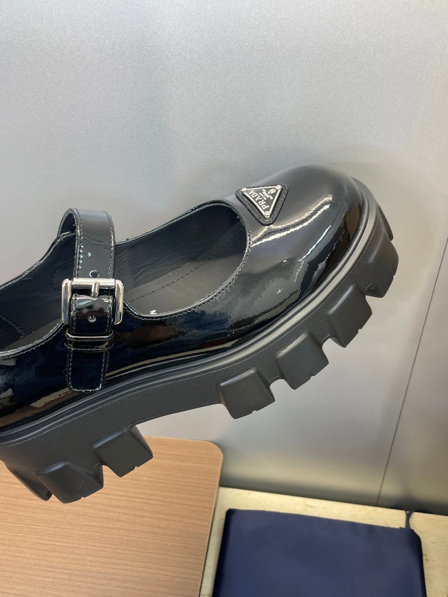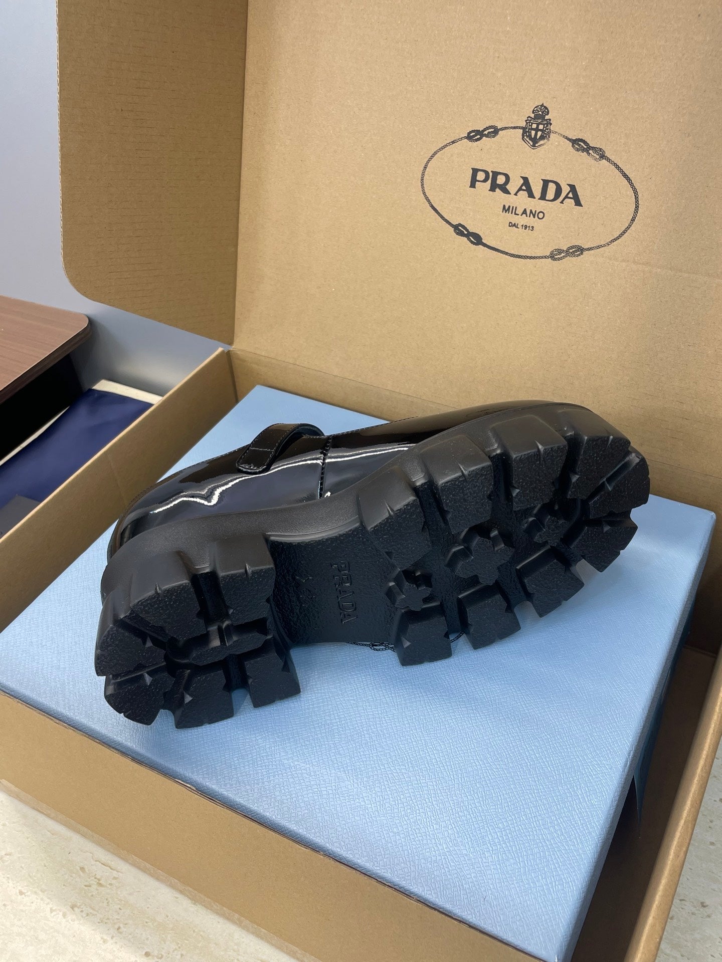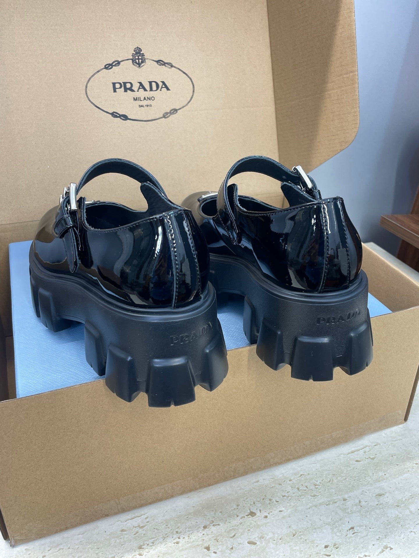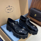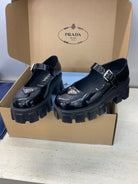 Prada Brushed Monolith Mary Janes Loafer Black Patent Leather 551879
