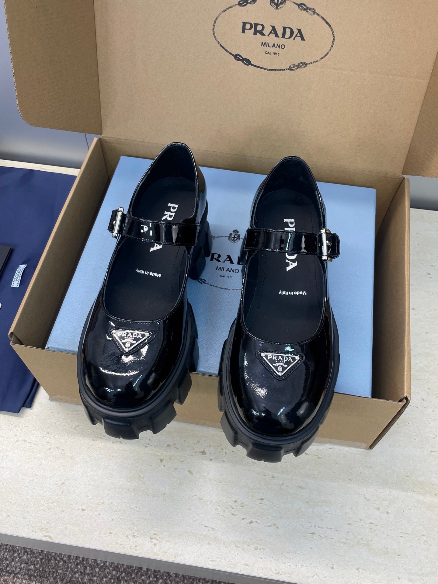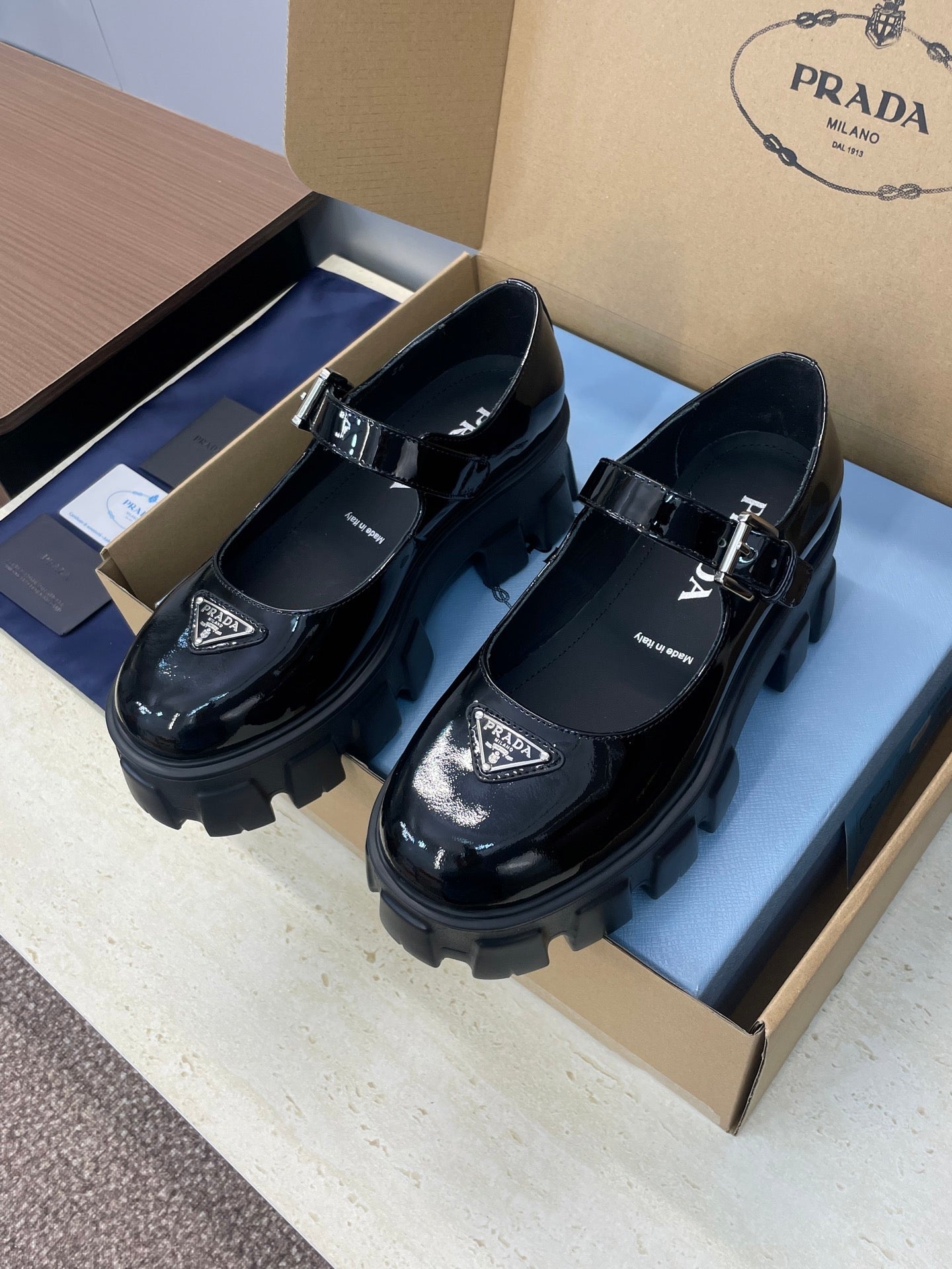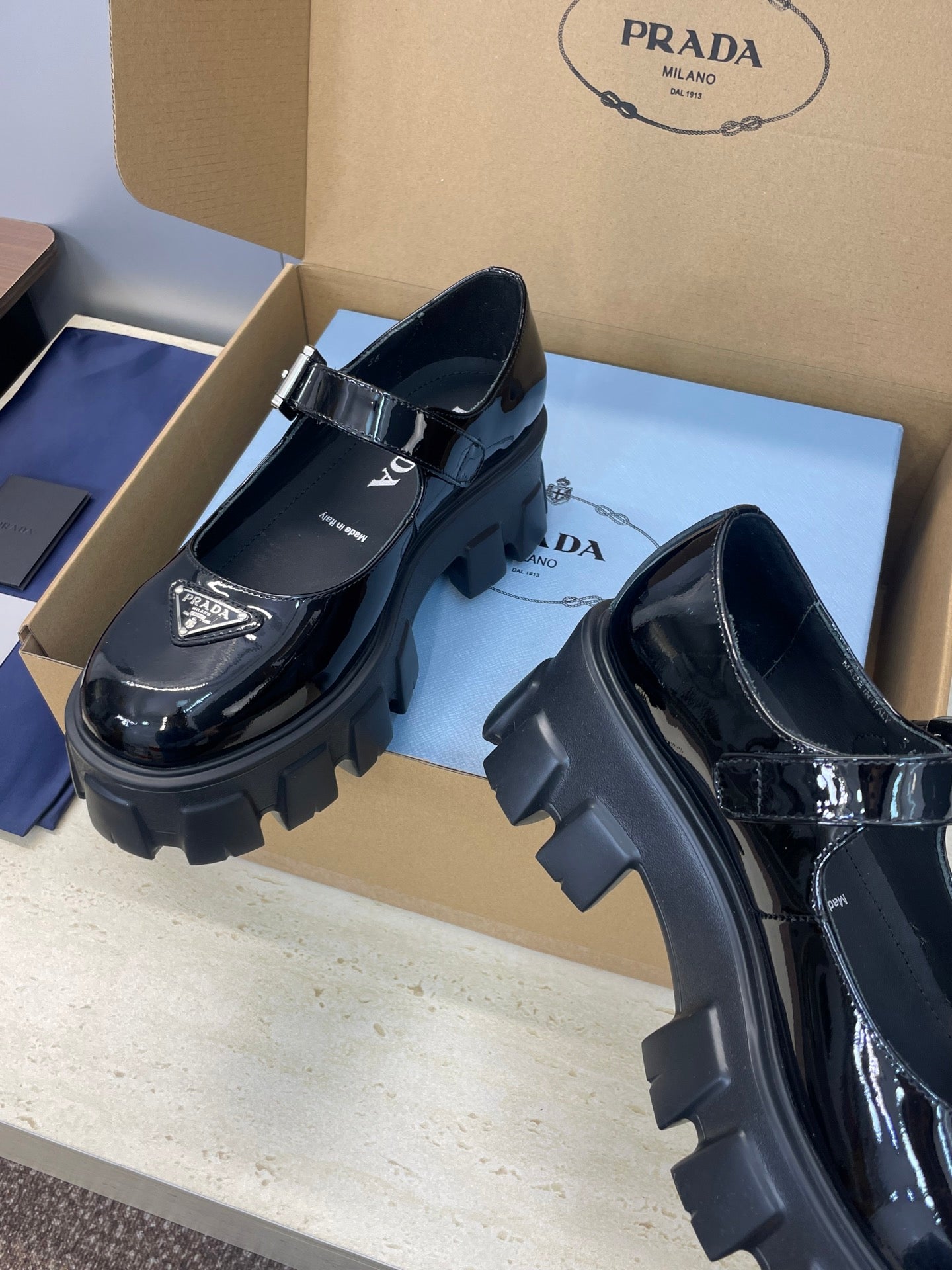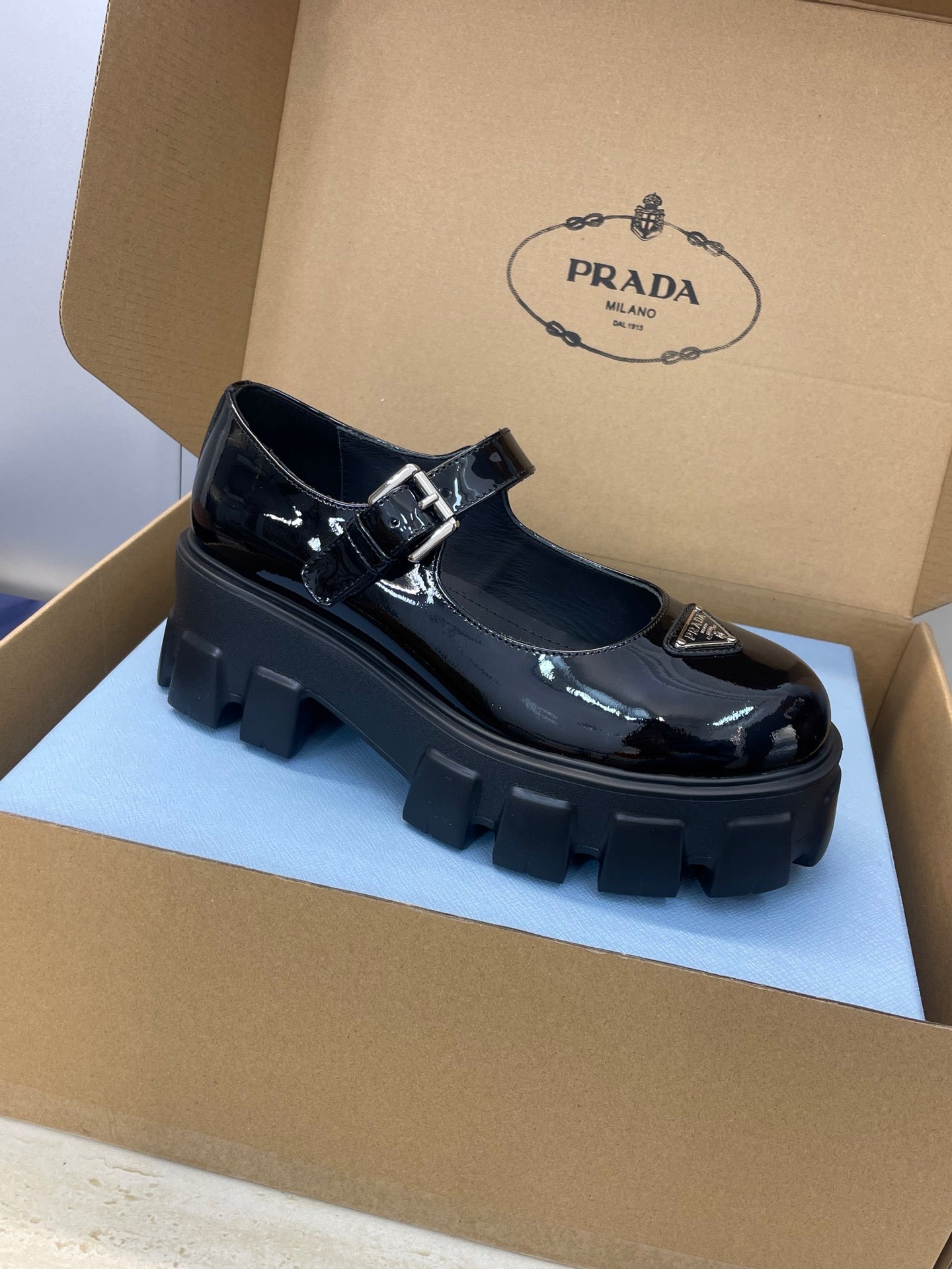 Prada Brushed Monolith Mary Janes Loafer Black Patent Leather 551879