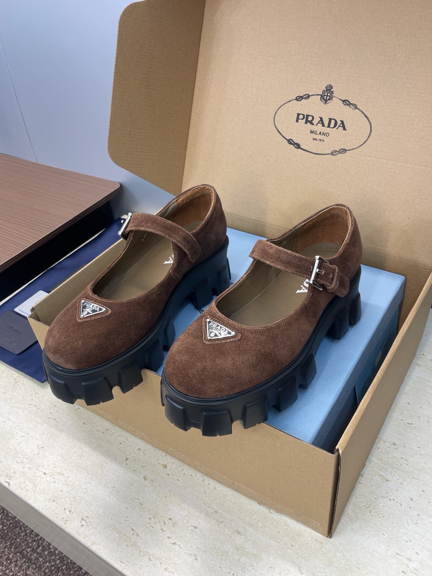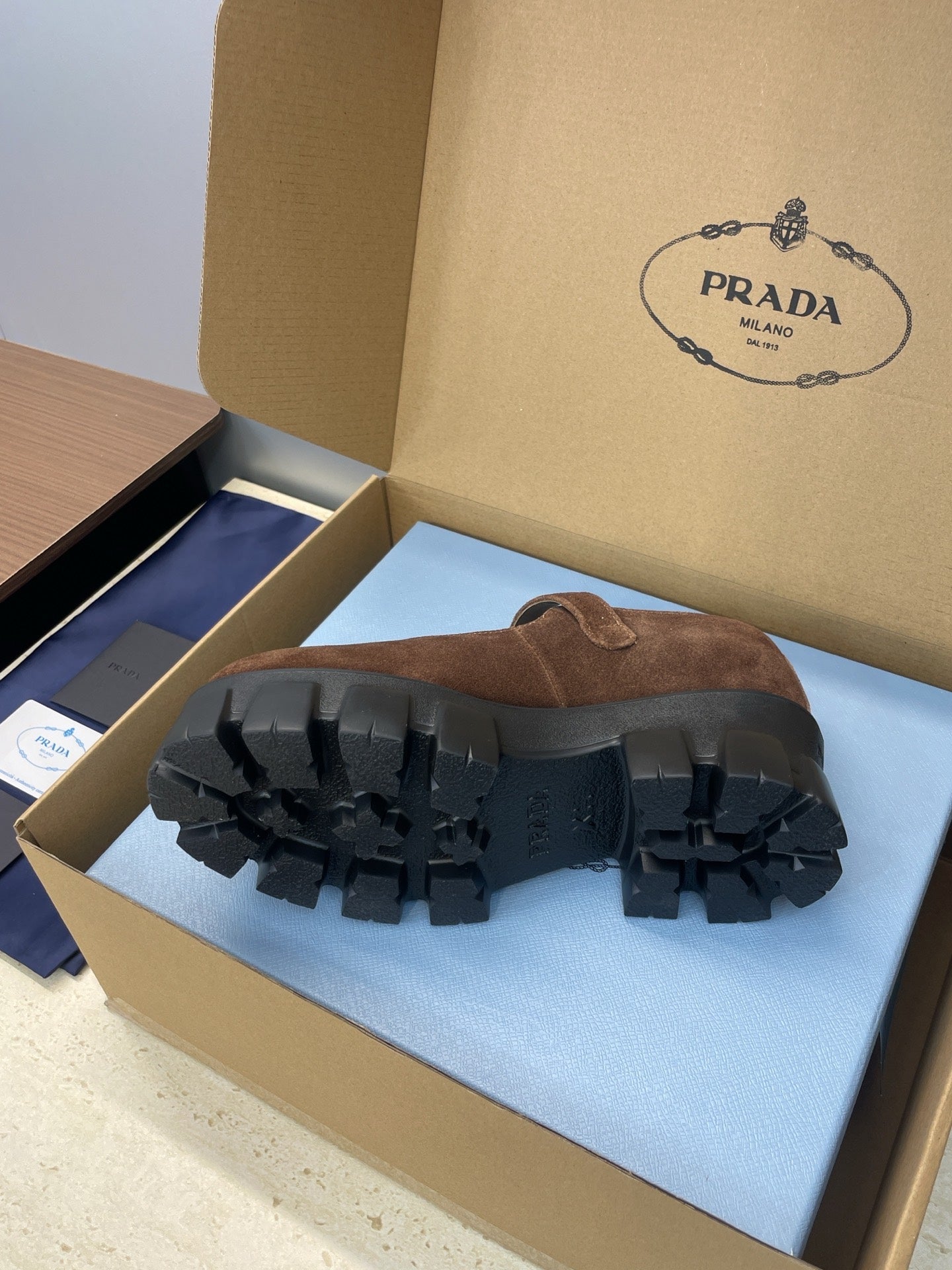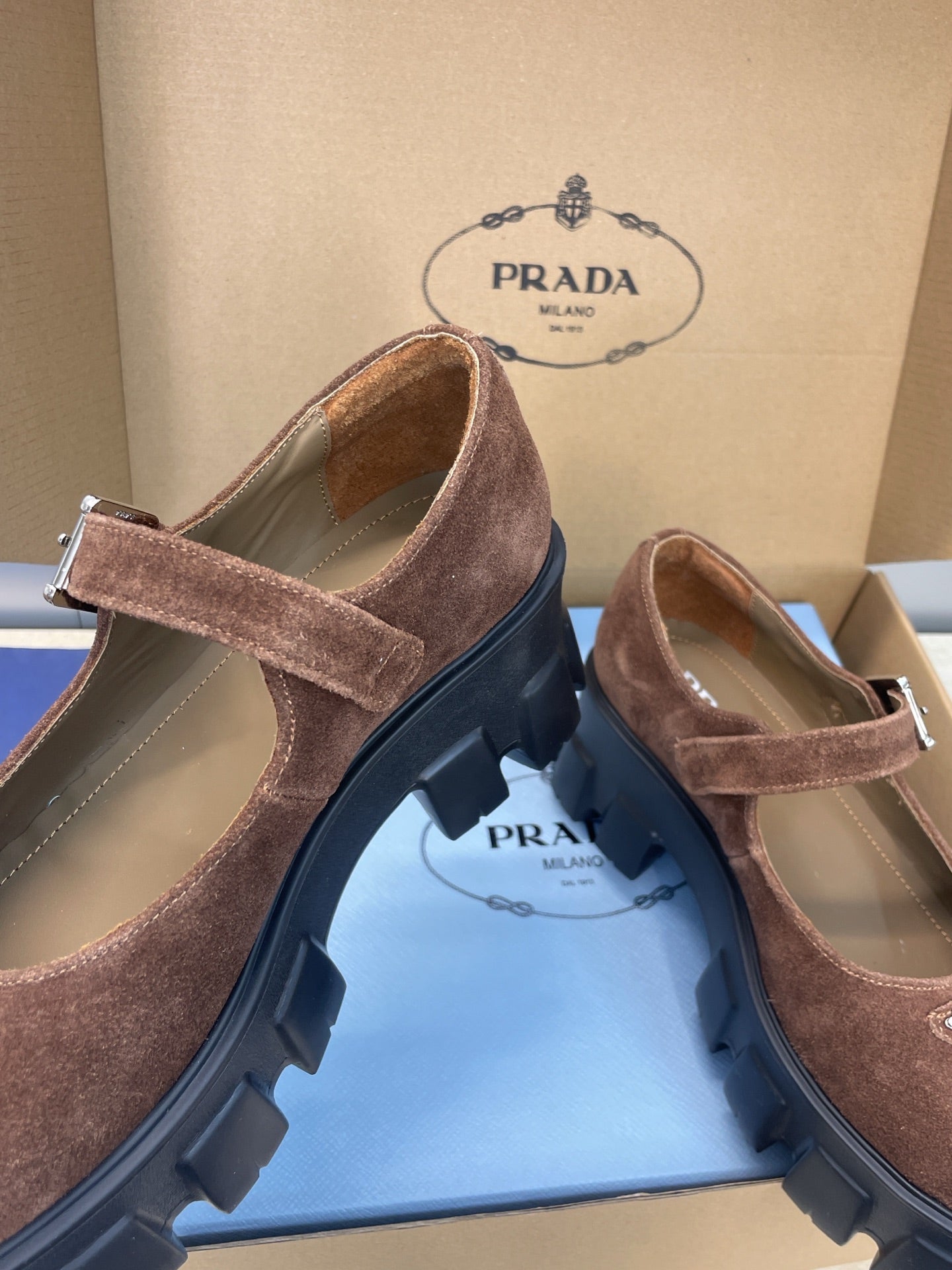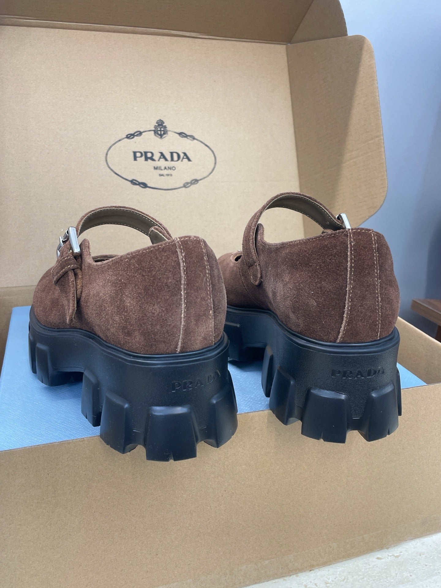 Prada Brushed Monolith Mary Janes Loafer Brown Suede 551880