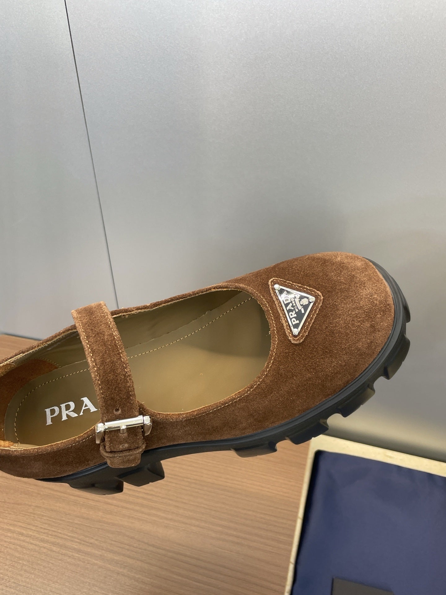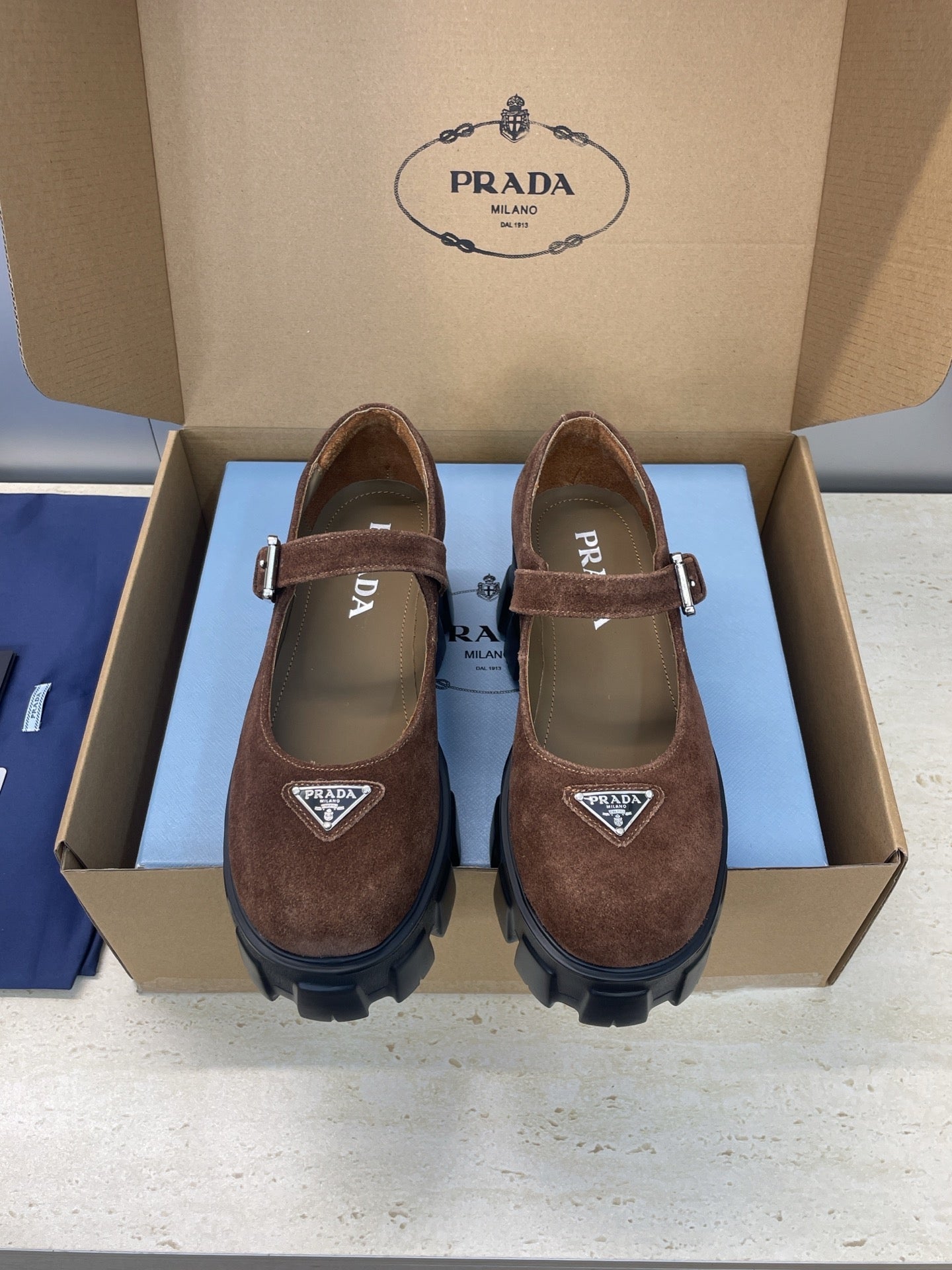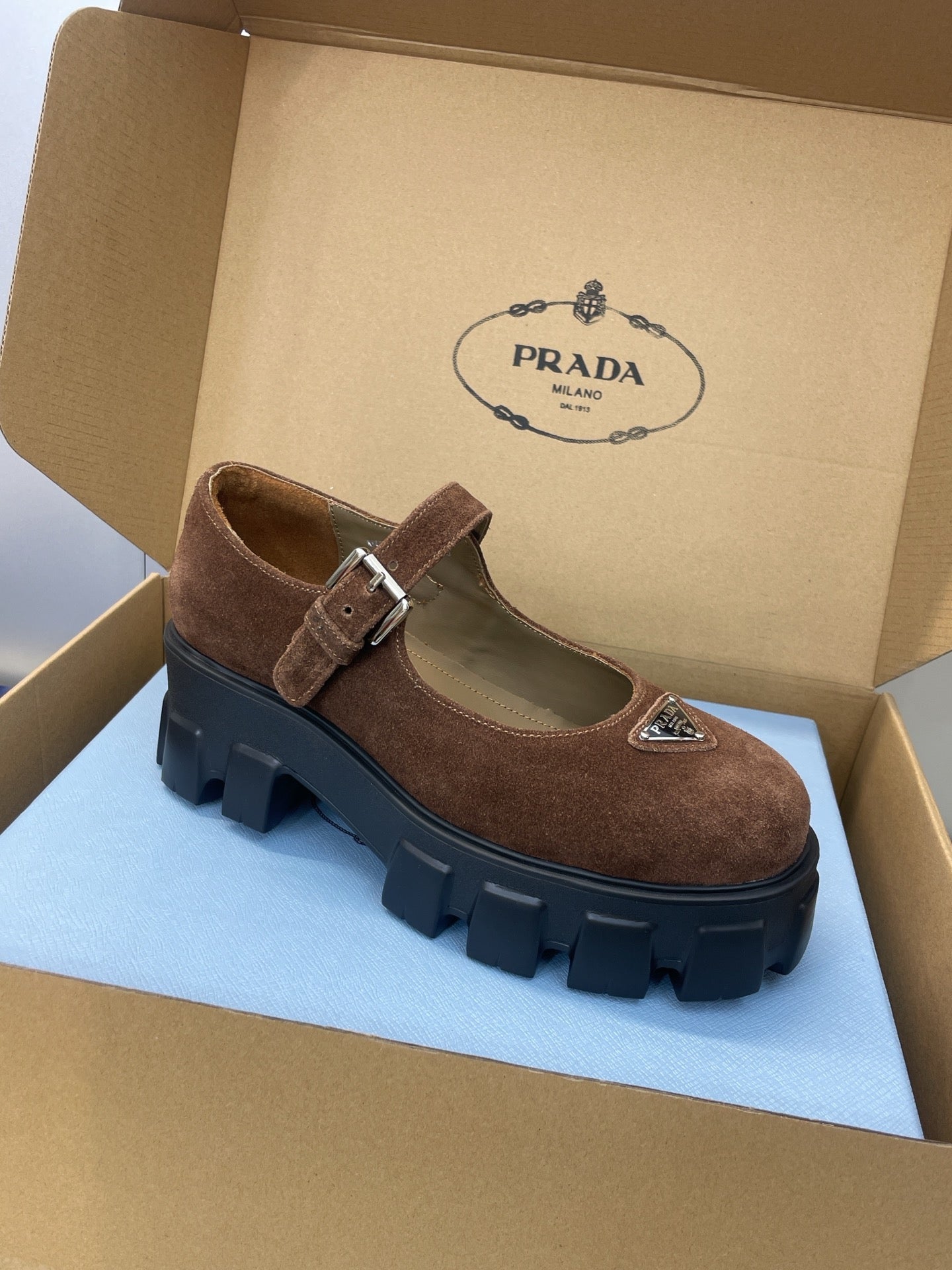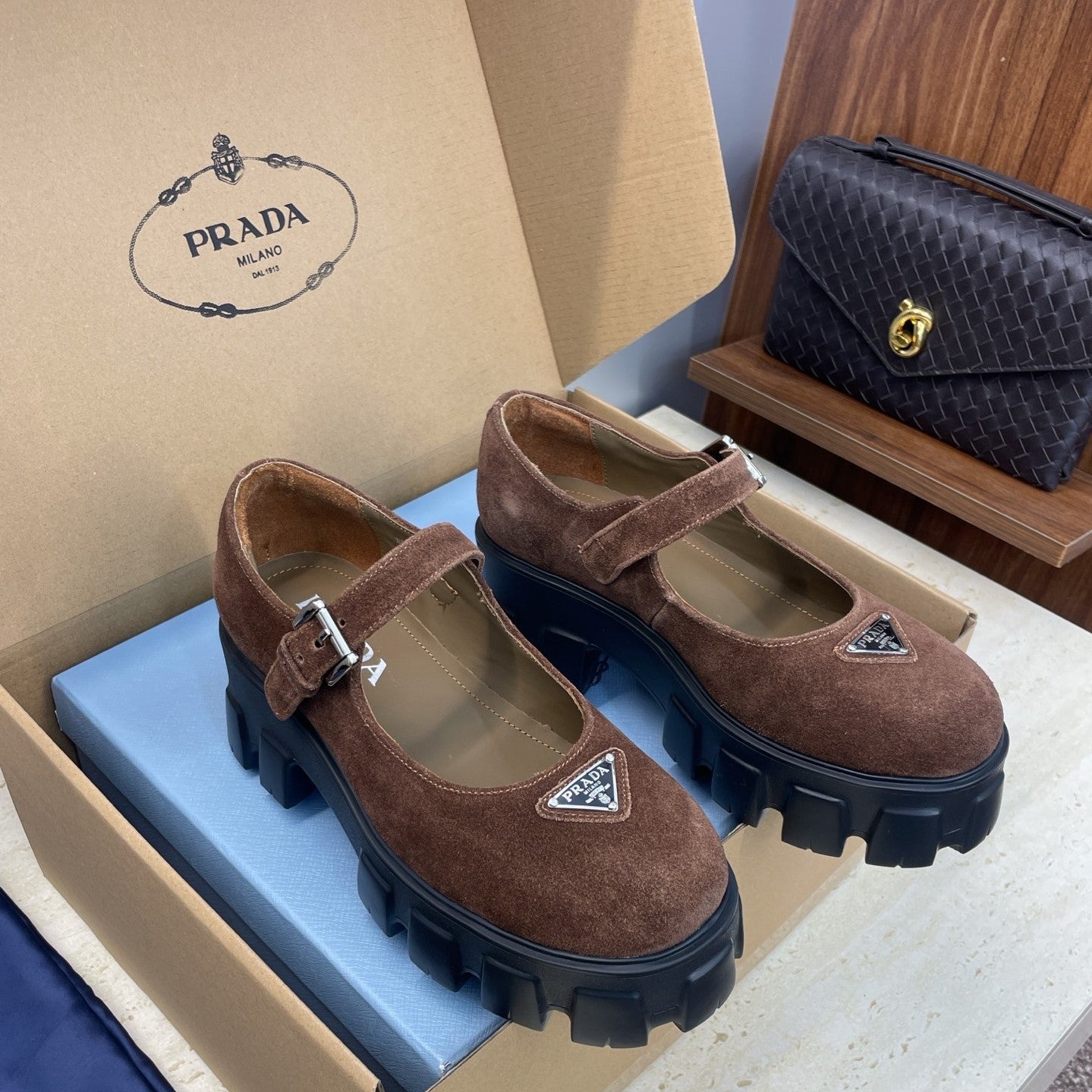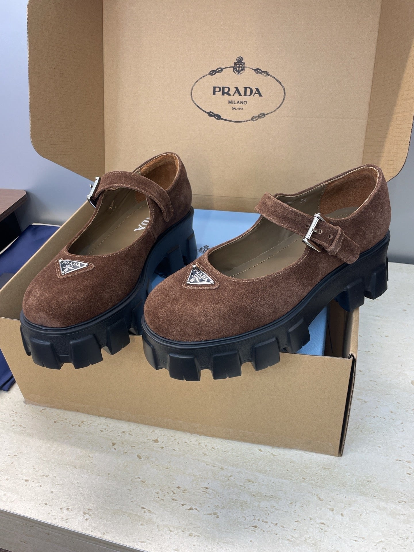 Prada Brushed Monolith Mary Janes Loafer Brown Suede 551880