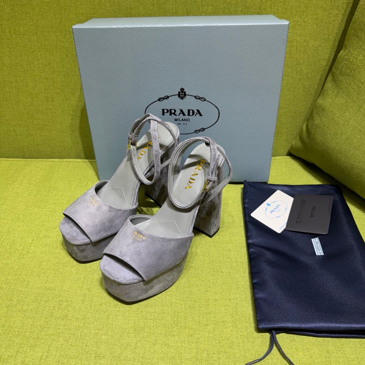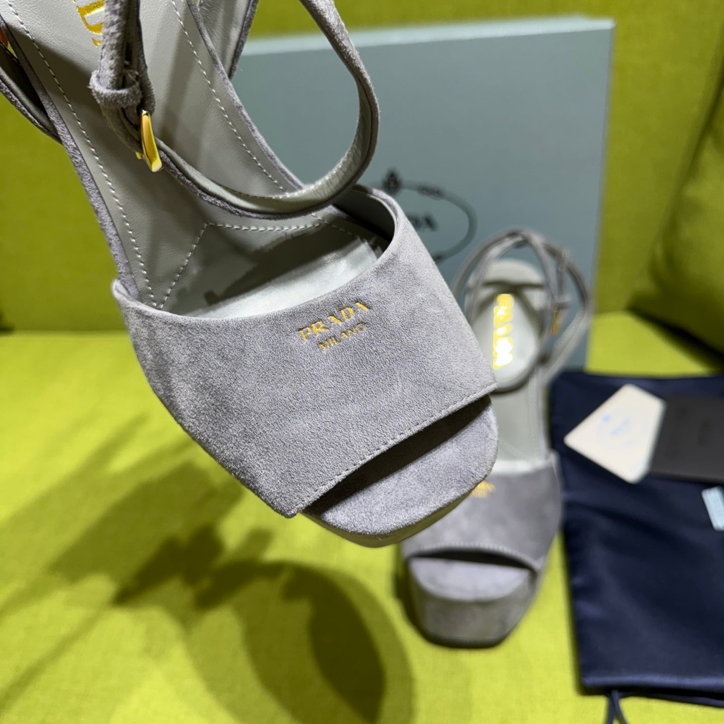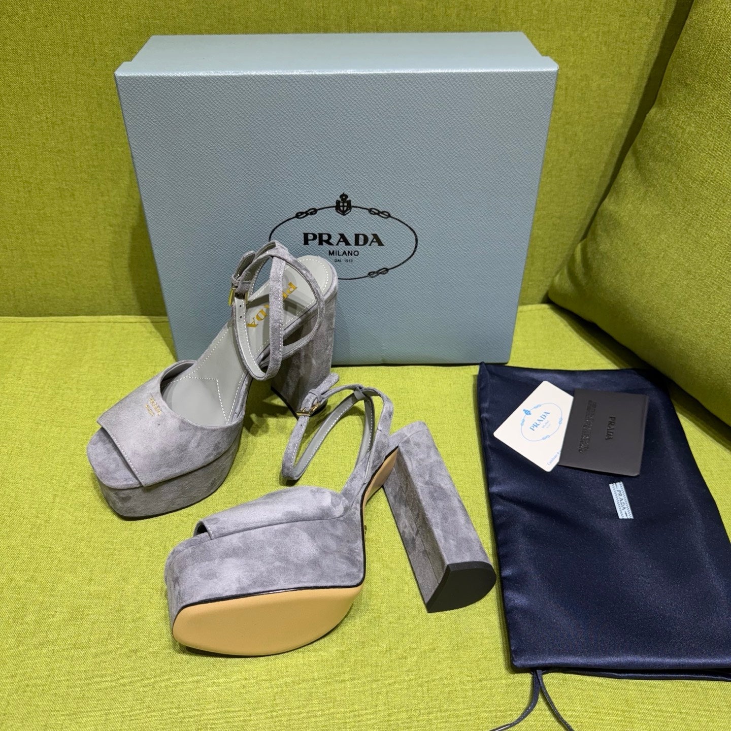 Prada 25 AW Platform Sandals Grey Suede 564118