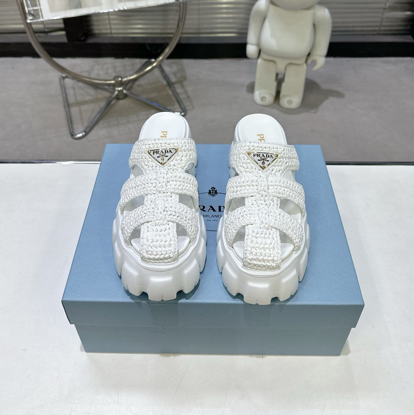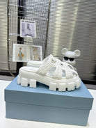 Prada Monolith Sandals 55mm White Raffia Cowhide 564335