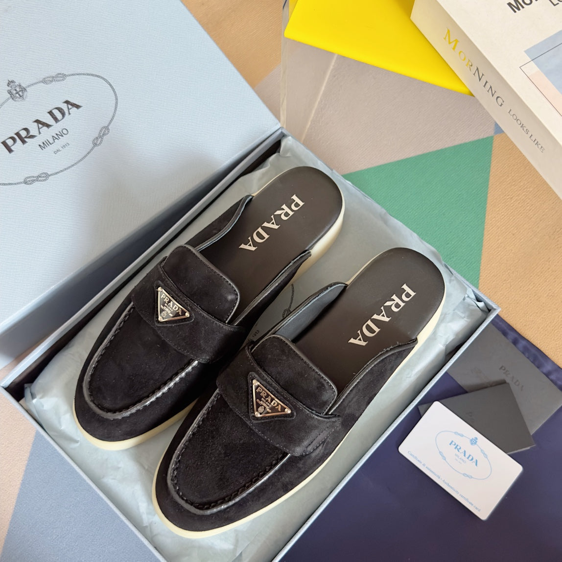 Pra Black Suede Leather Mule 25mm Rubber Sole