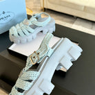PRA MONOLITH CROCHET CAGE SANDALS PASTEL BLUE LAMBSKIN