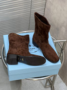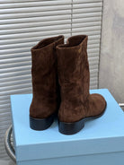 Prada 25 Boot Brown Suede Sheepskin 499844