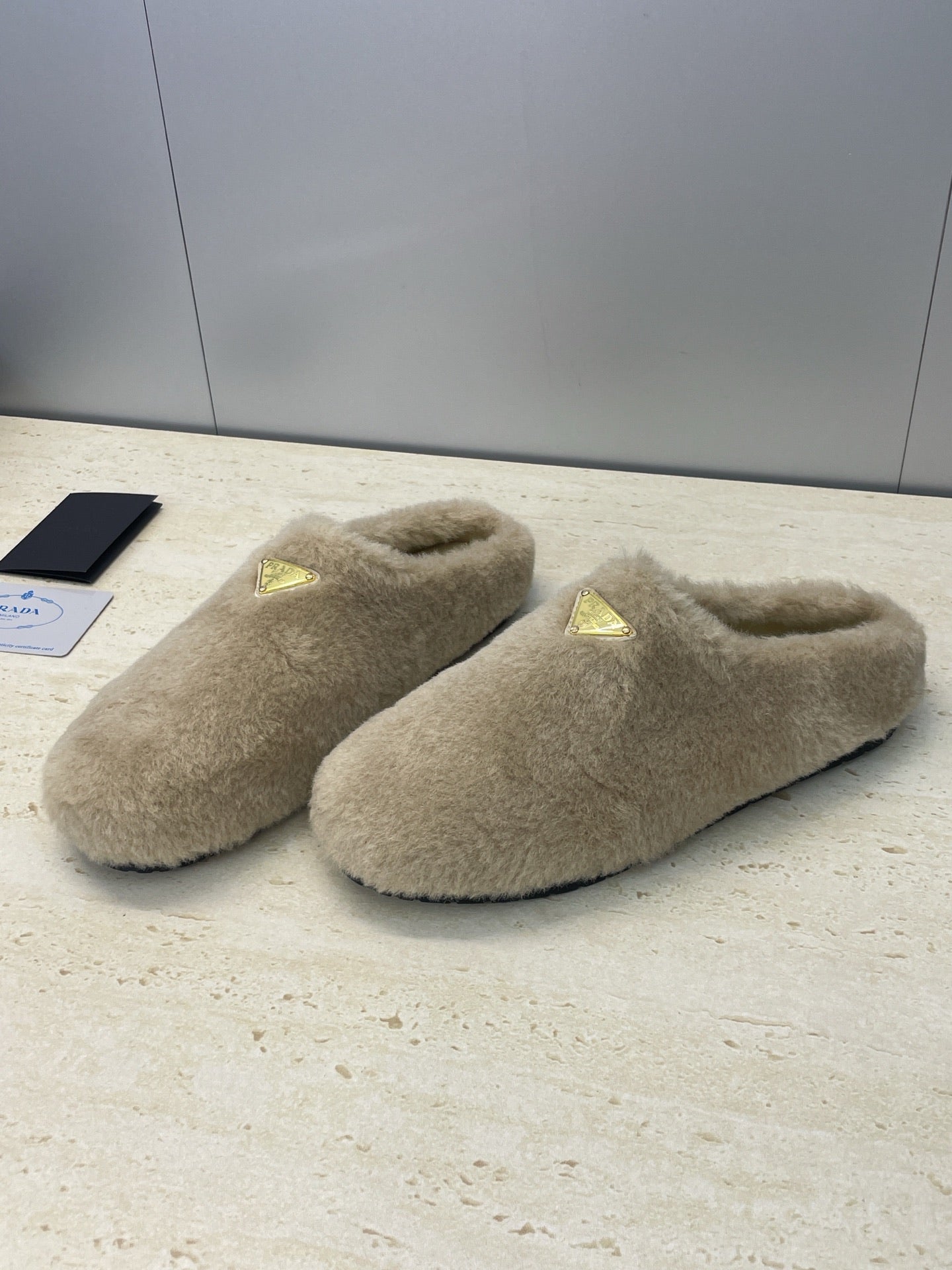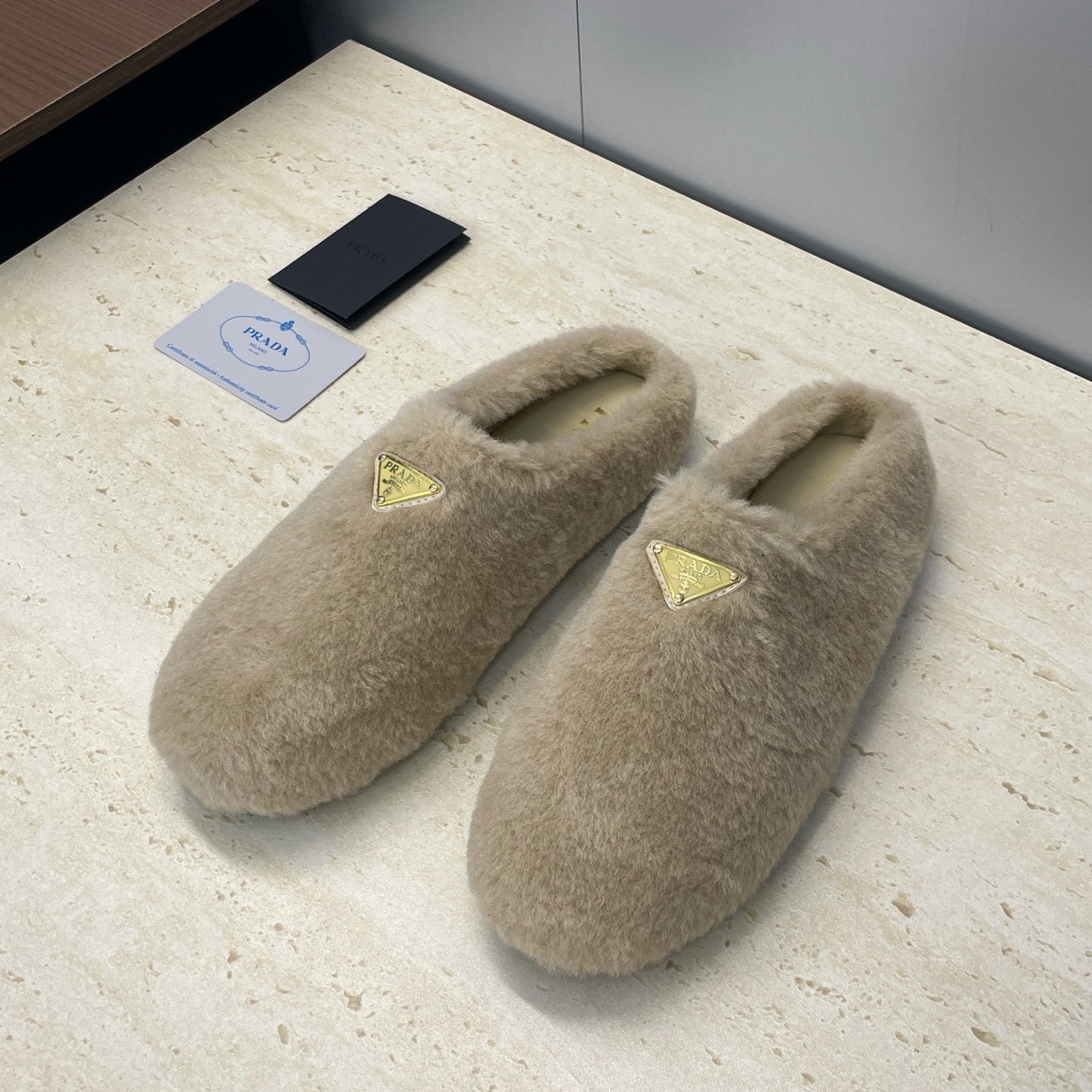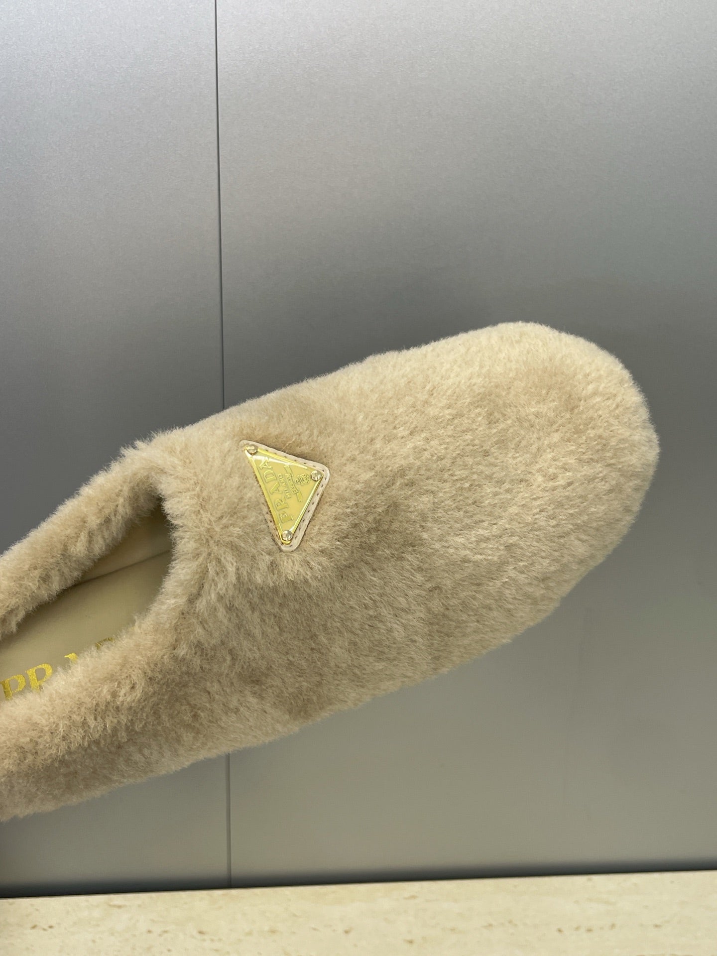 Prada 25s Slide Warm Beige Shearing 551888