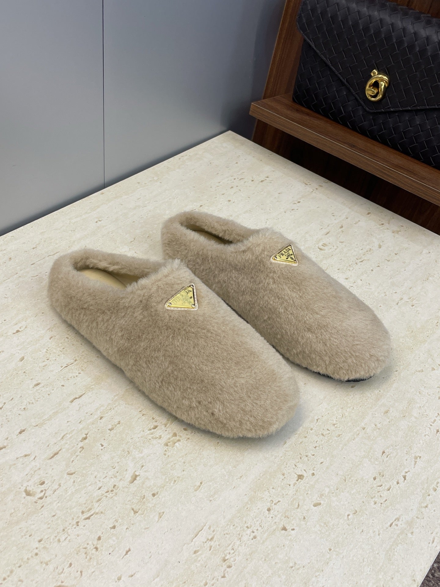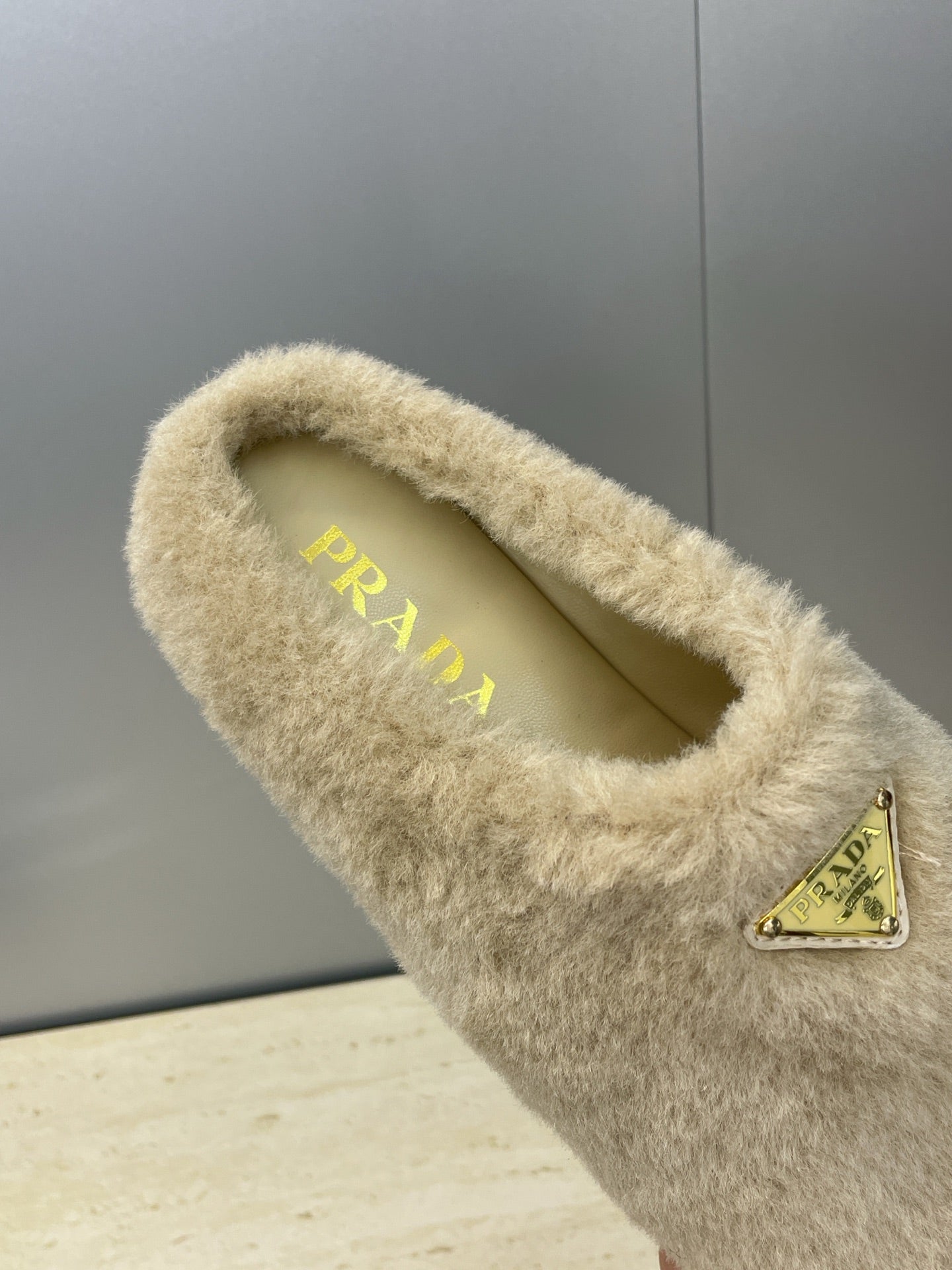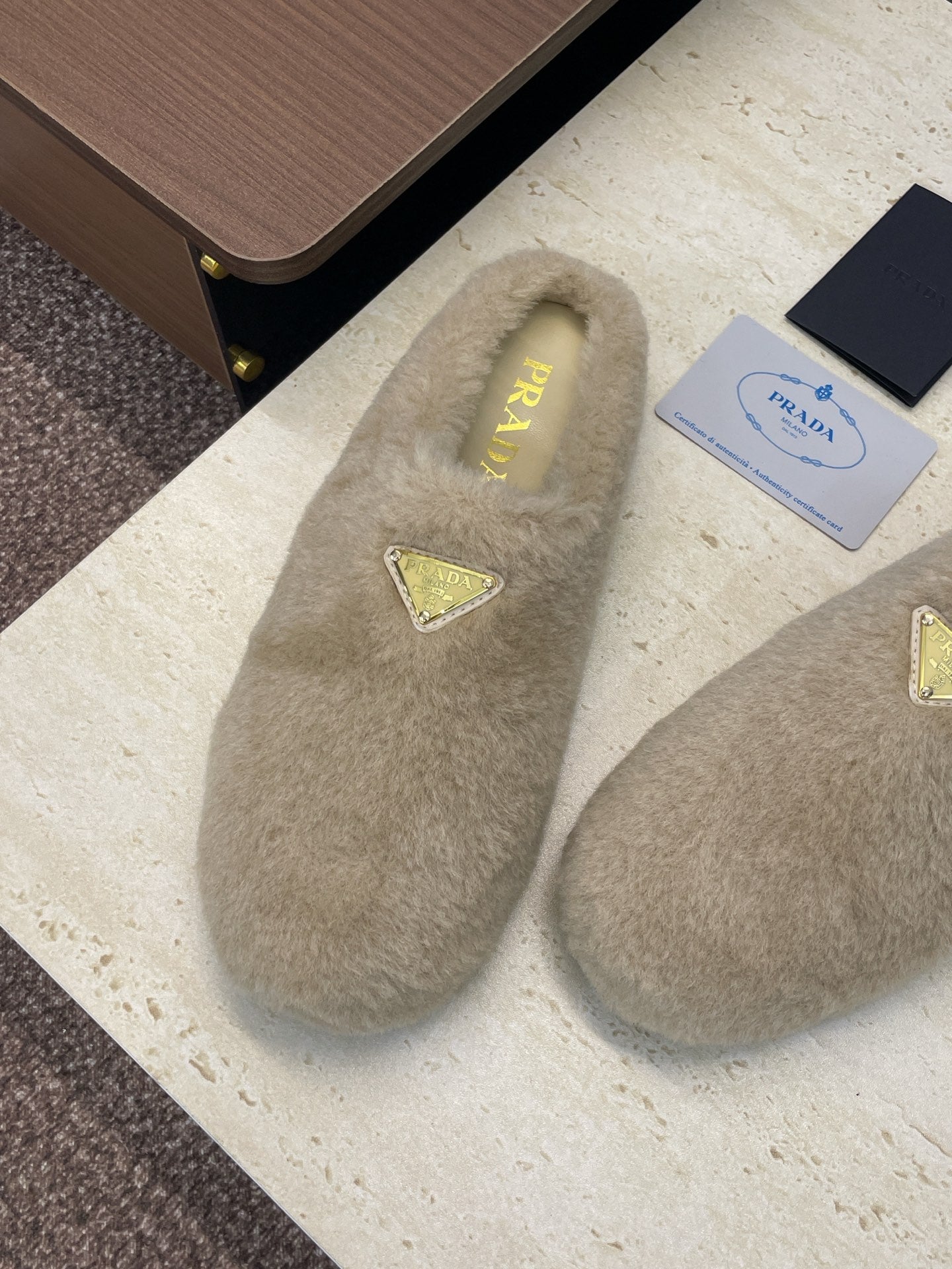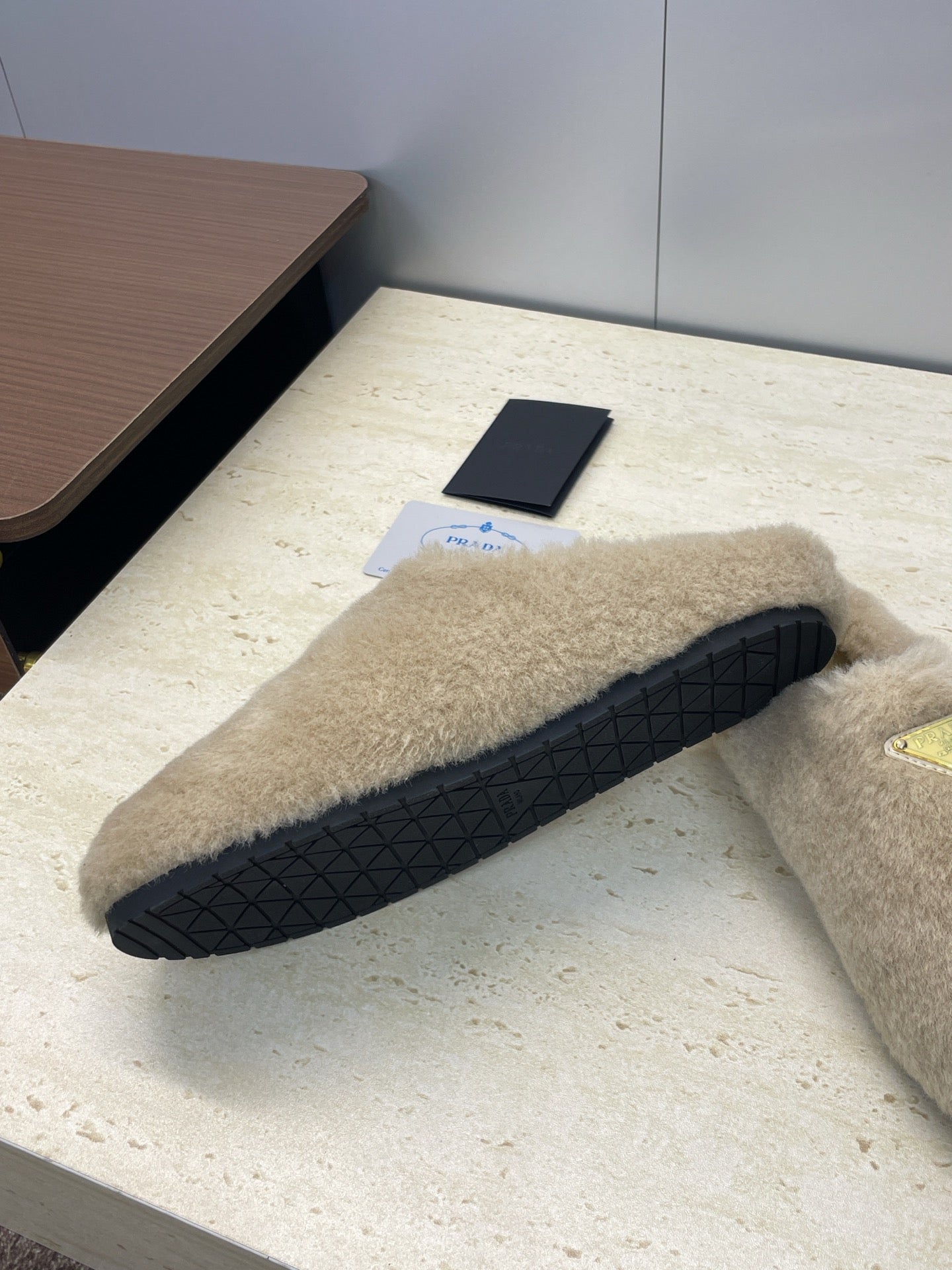 Prada 25s Slide Warm Beige Shearing 551888