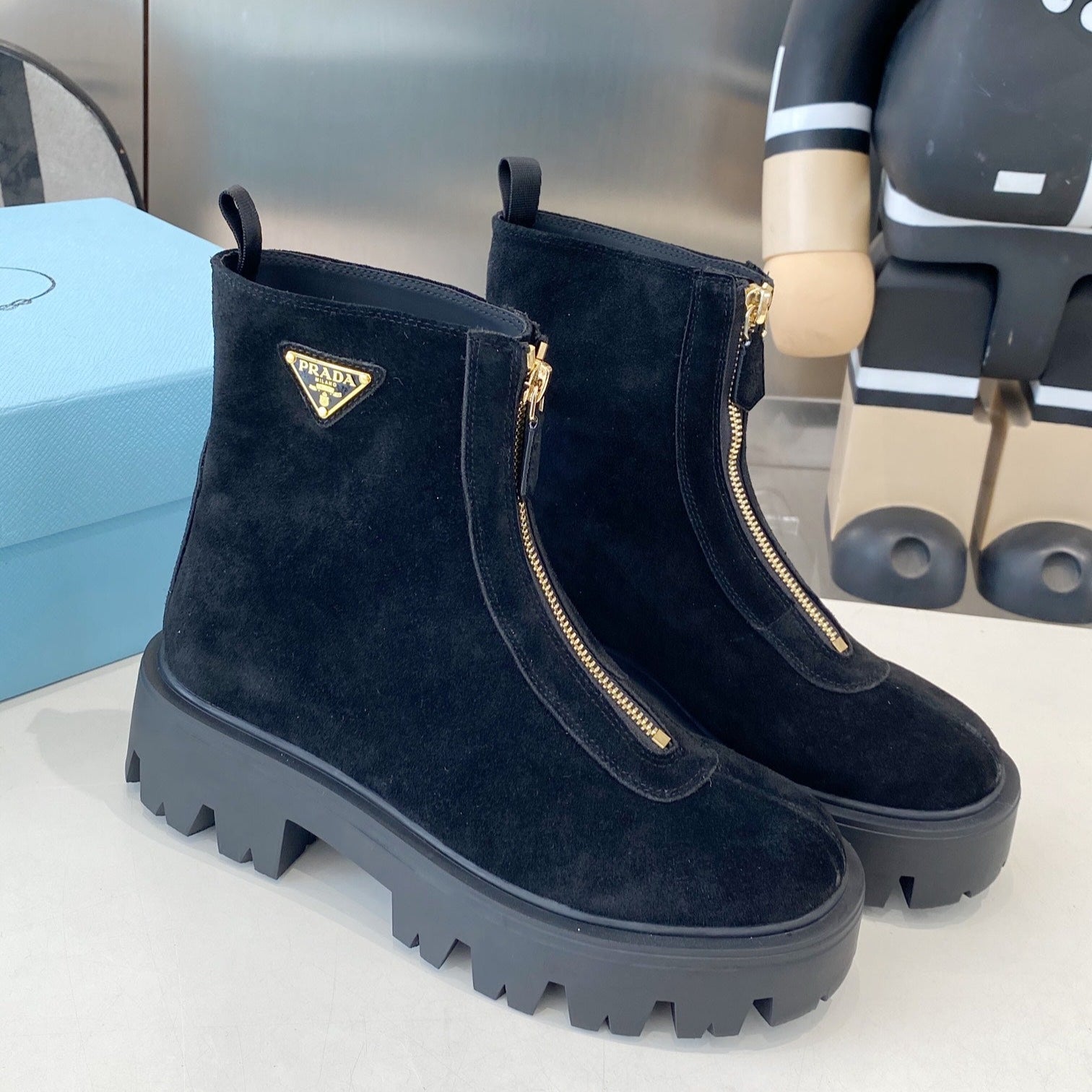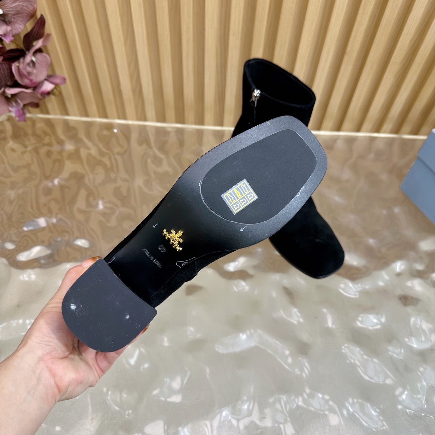 Prada 25 Boot Navy Blue Black Cowhide Suede 491869