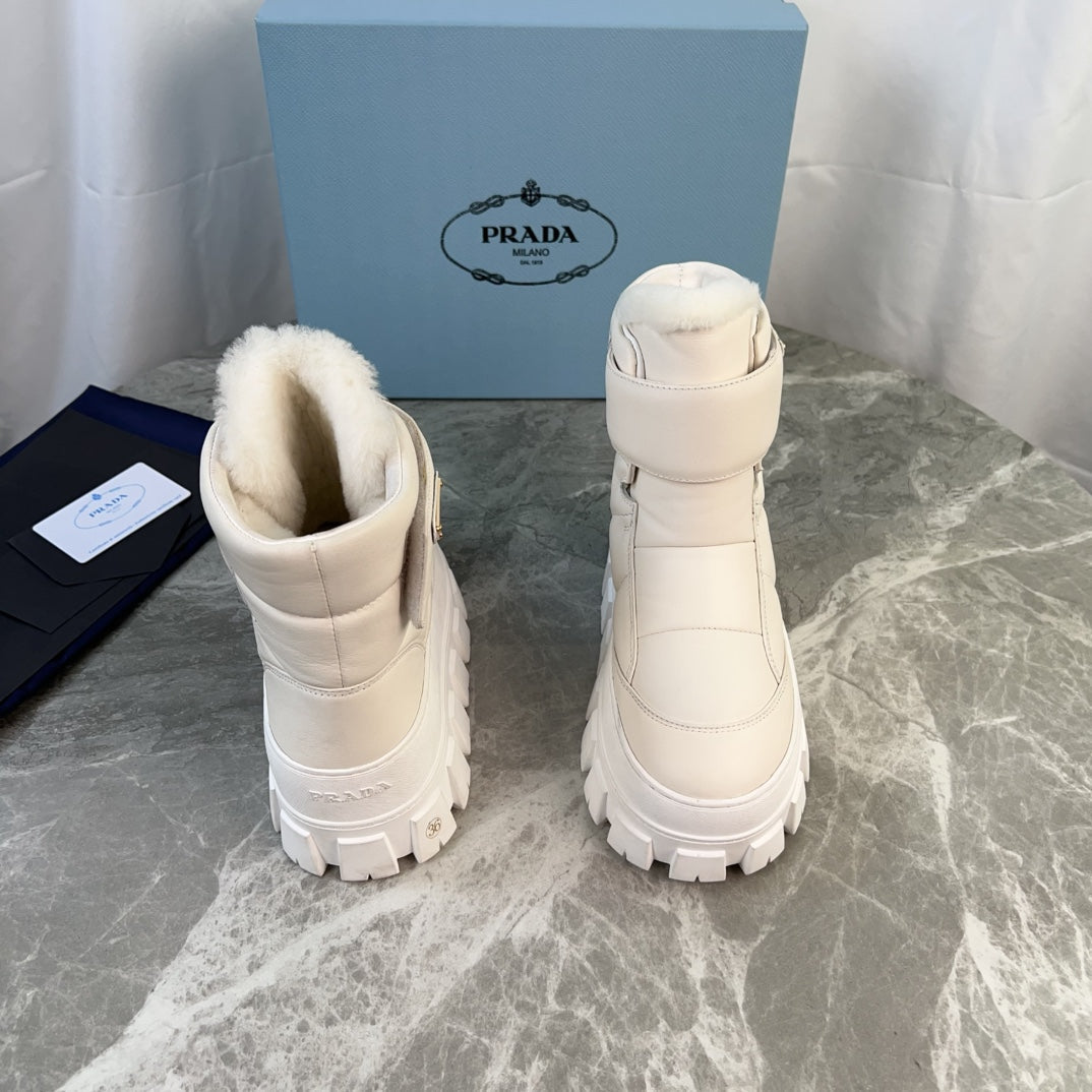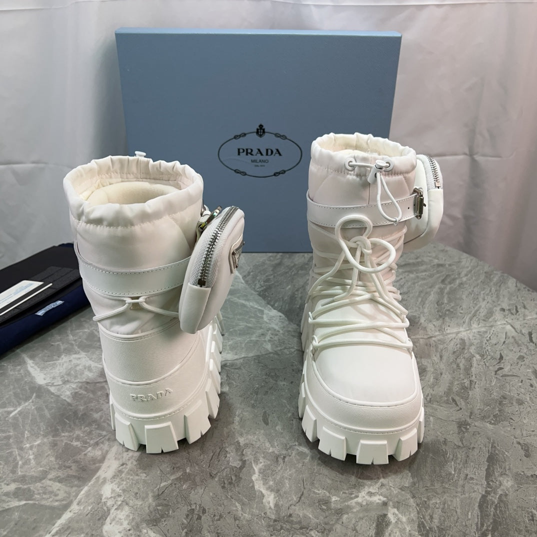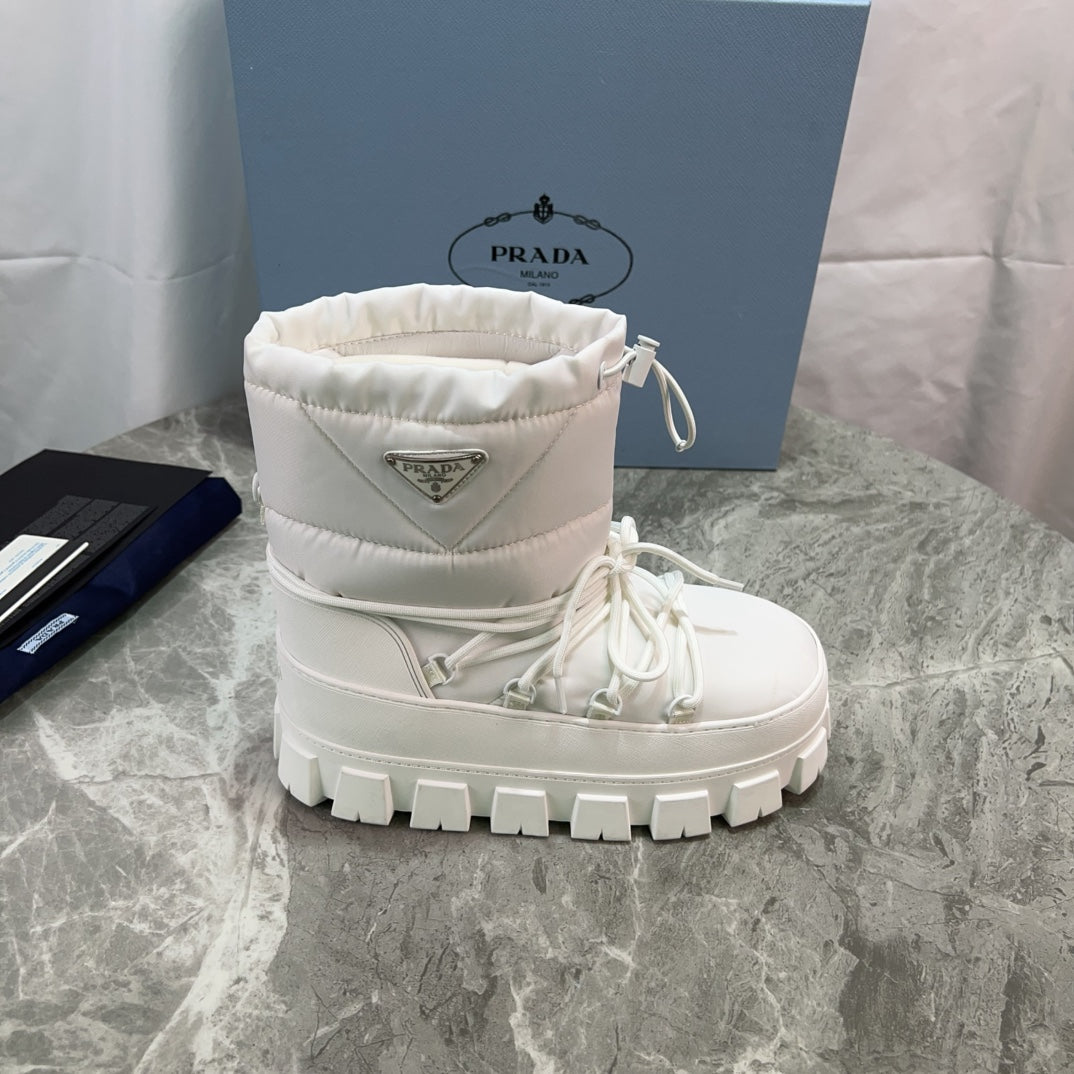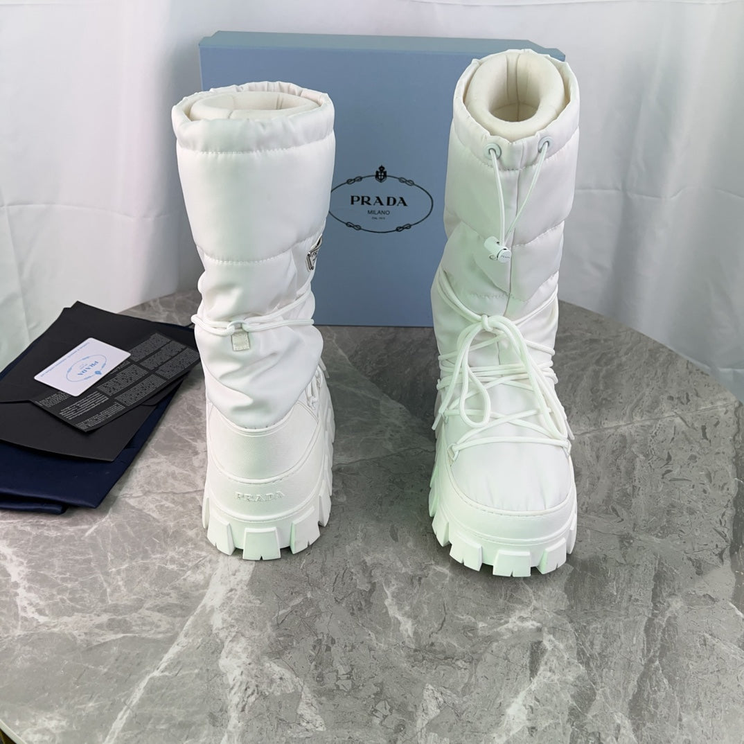 PRA Logo-Plaque Snow Boots White Recycled Polyamide Cowhide 454743