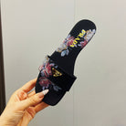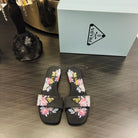 PRA PRINTED SLIDES SLIPPERS BLACK SATIN