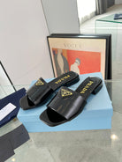 PRA SAFFIANO PATENT SLIDES BLACK CALFSKIN
