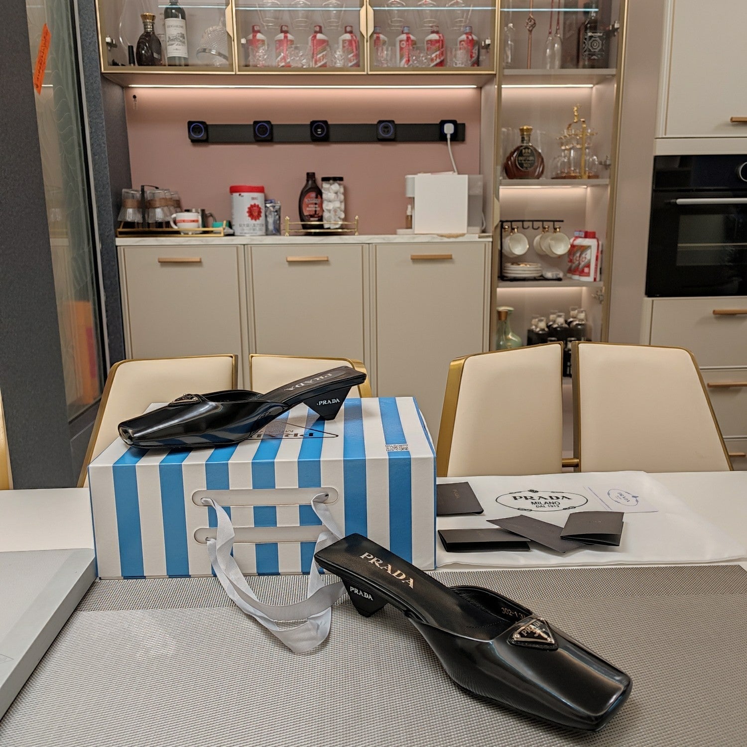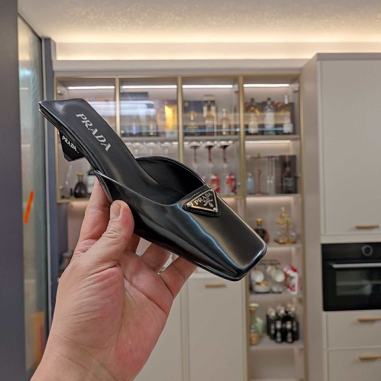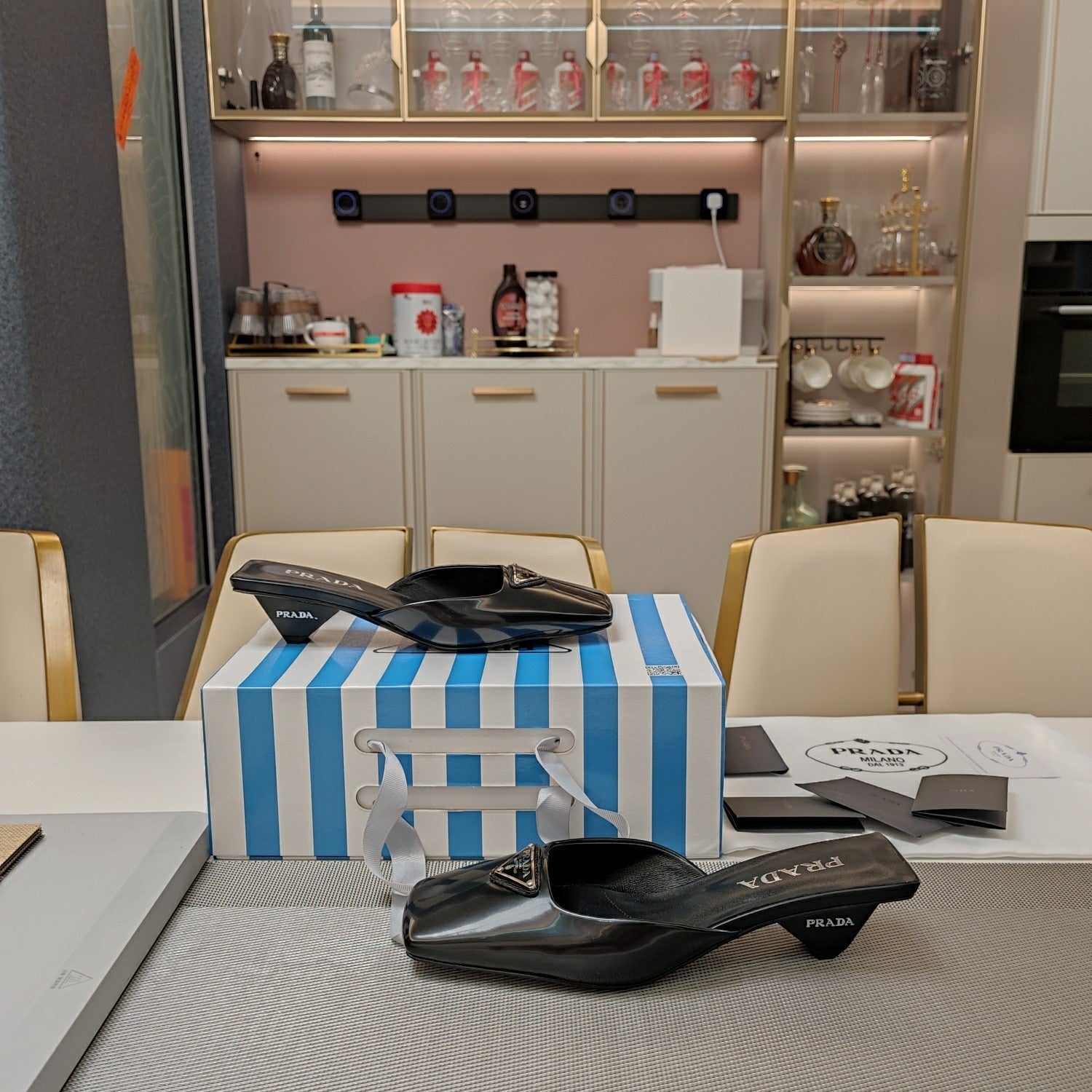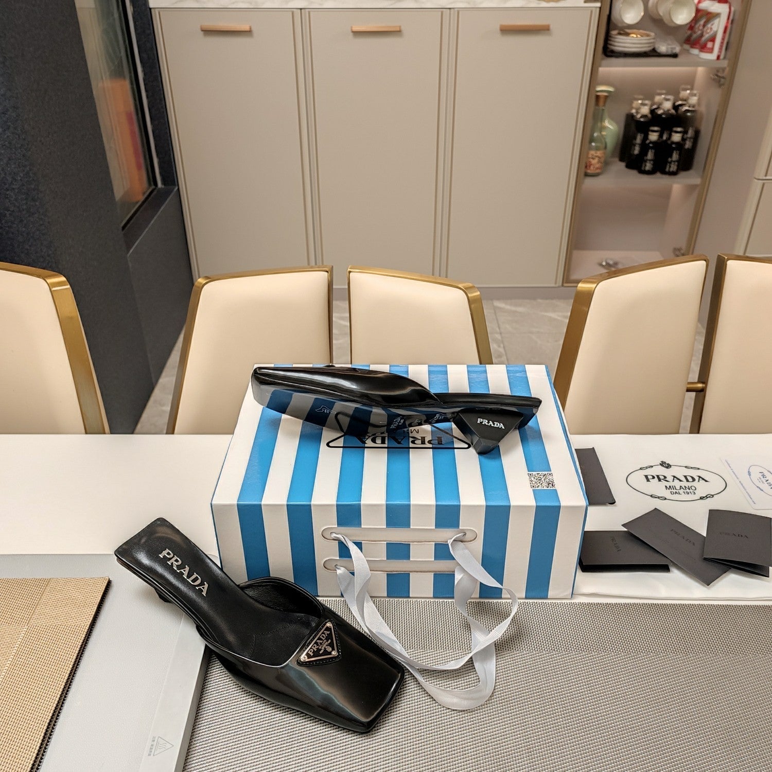 PRA SQUARE TOE MULES BLACK CALFSKIN WITH LOGO