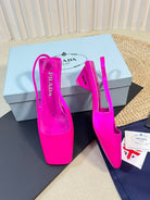 PRA SQUARE TOE SLINGBACK PUMPS BRIGHT PINK SATIN