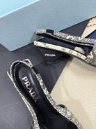 PRA SQUARE TOE SLINGBACK PUMPS SNAKESKIN MOTIF SATIN
