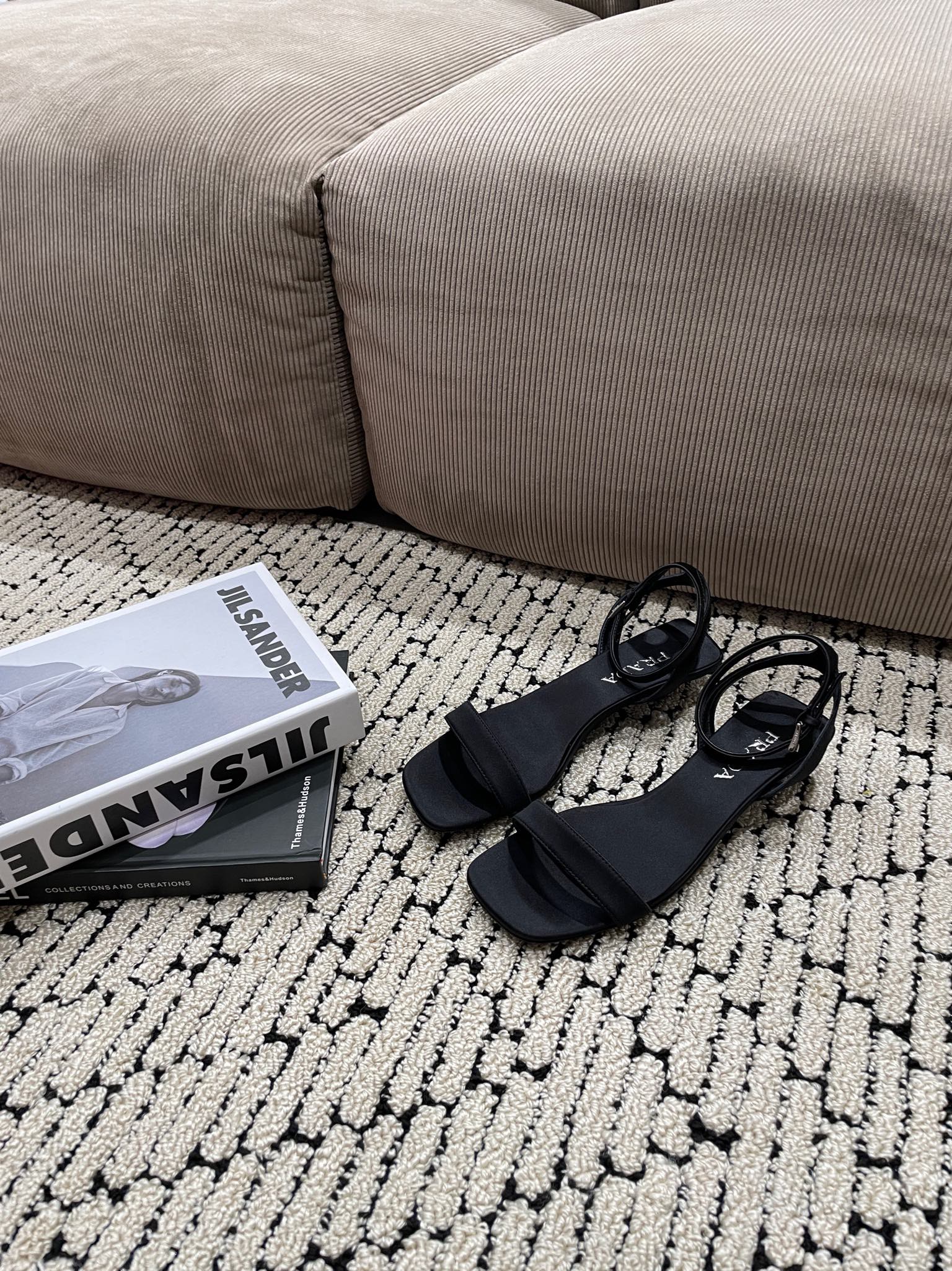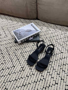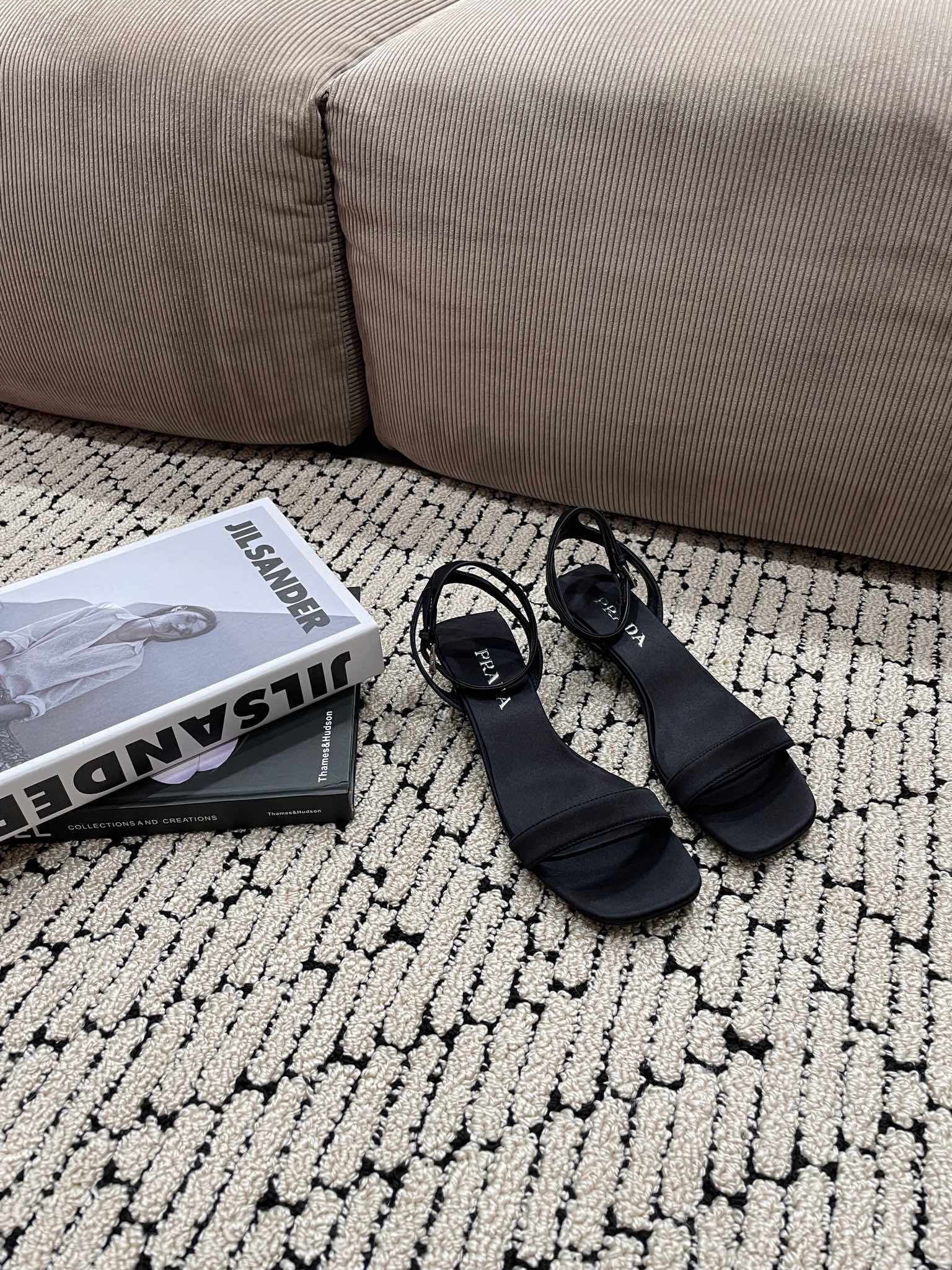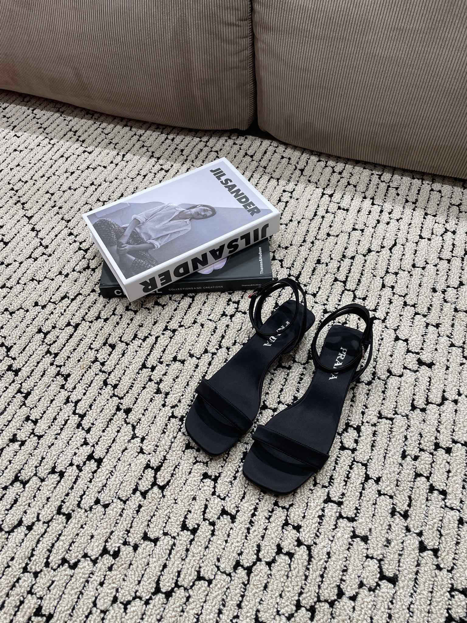 PRA TRIANGLE HEEL SATIN SANDALS BLACK