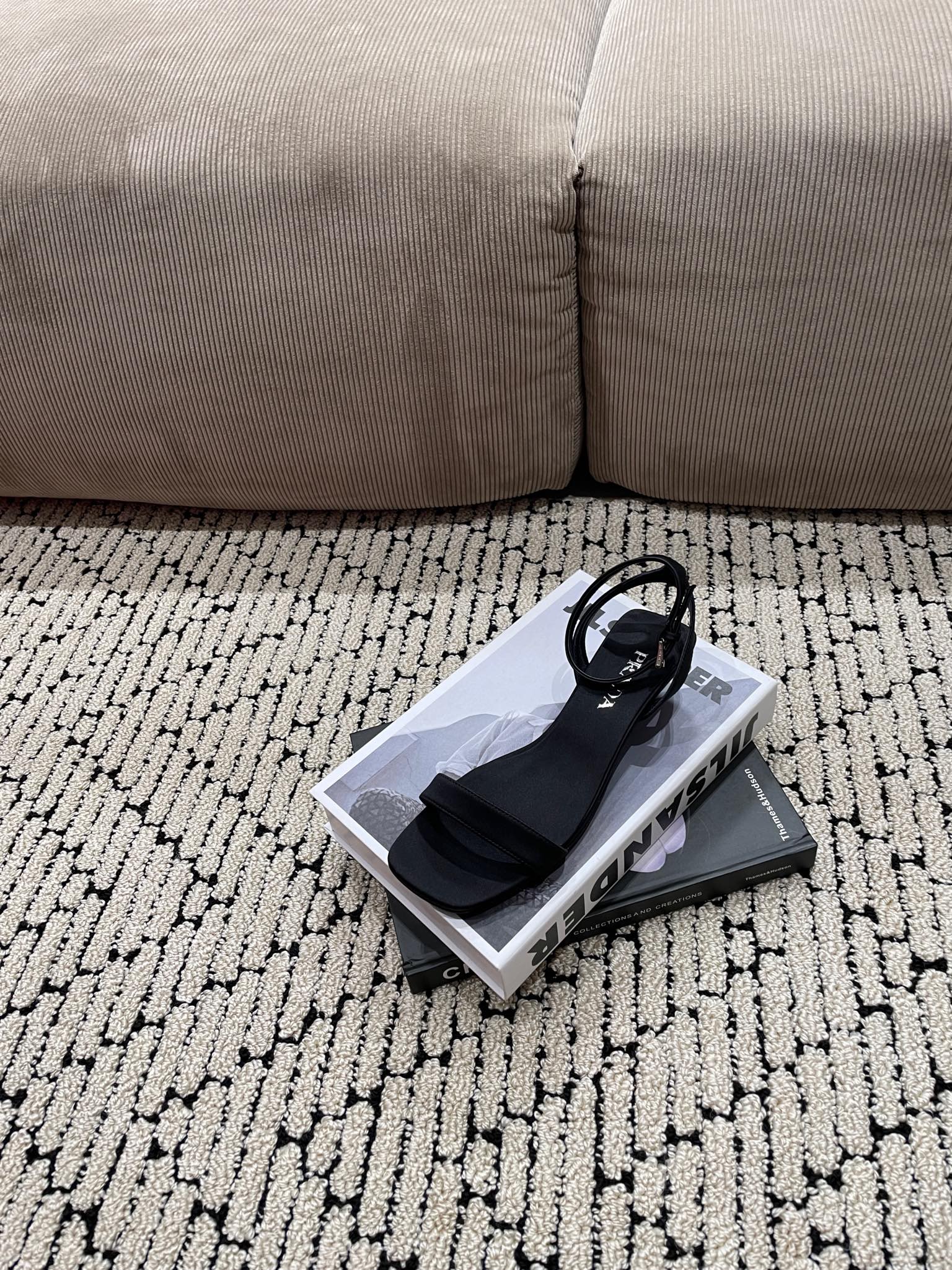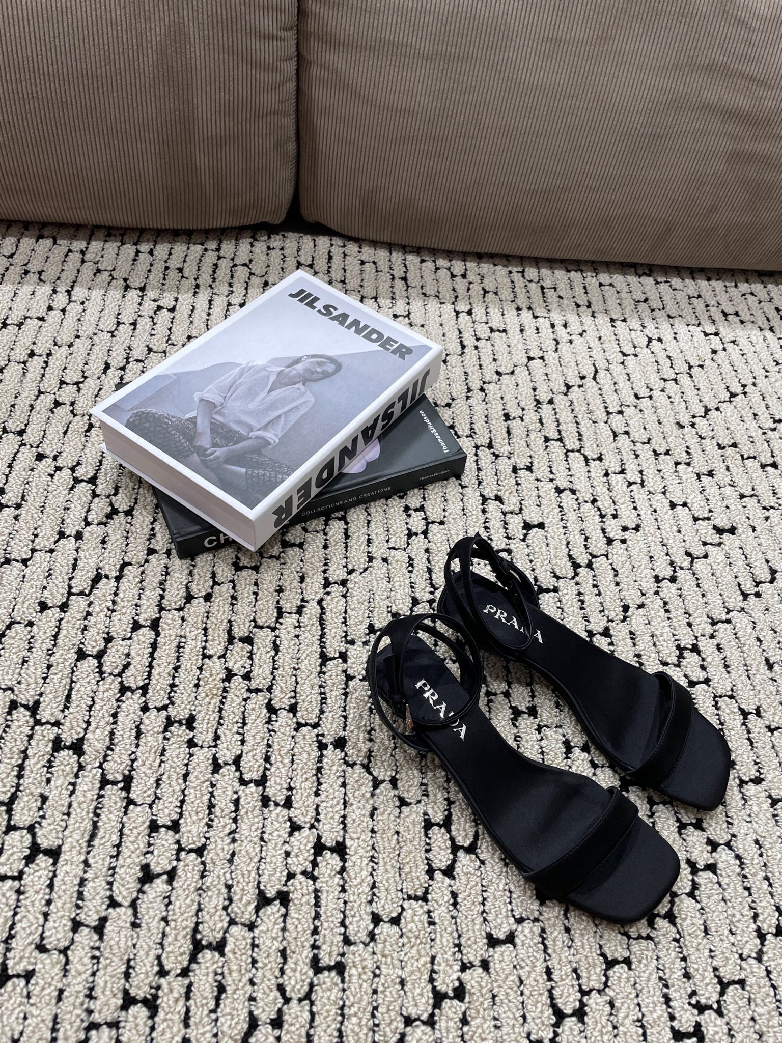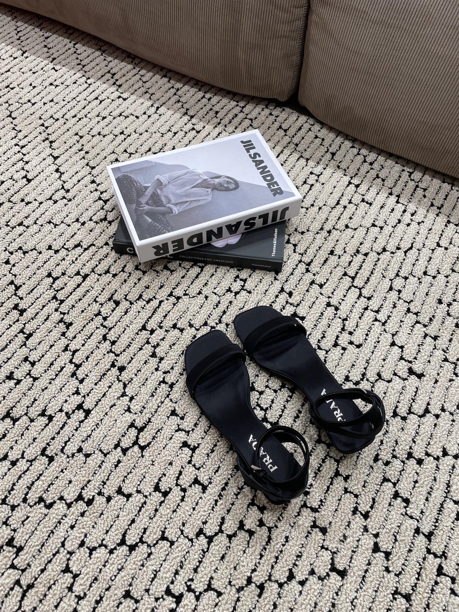 PRA TRIANGLE HEEL SATIN SANDALS BLACK
