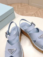 PRA WEDGE PLATFORM SANDALS SAPPHIRE CALFSKIN