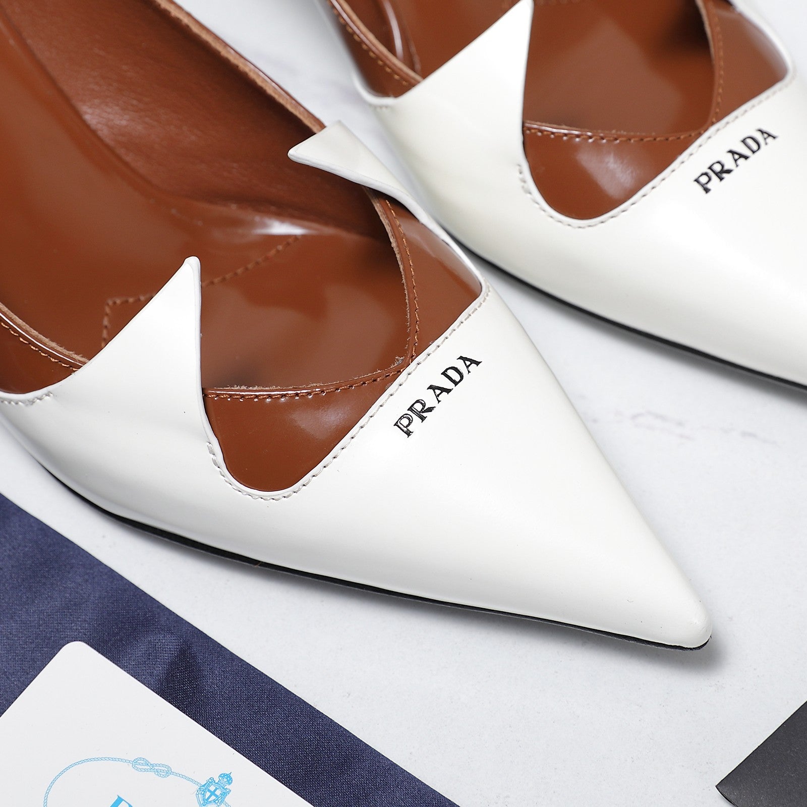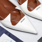 Prada Two-Tone Brushed Pumps 55mm Chocolate White Cowhide 456263