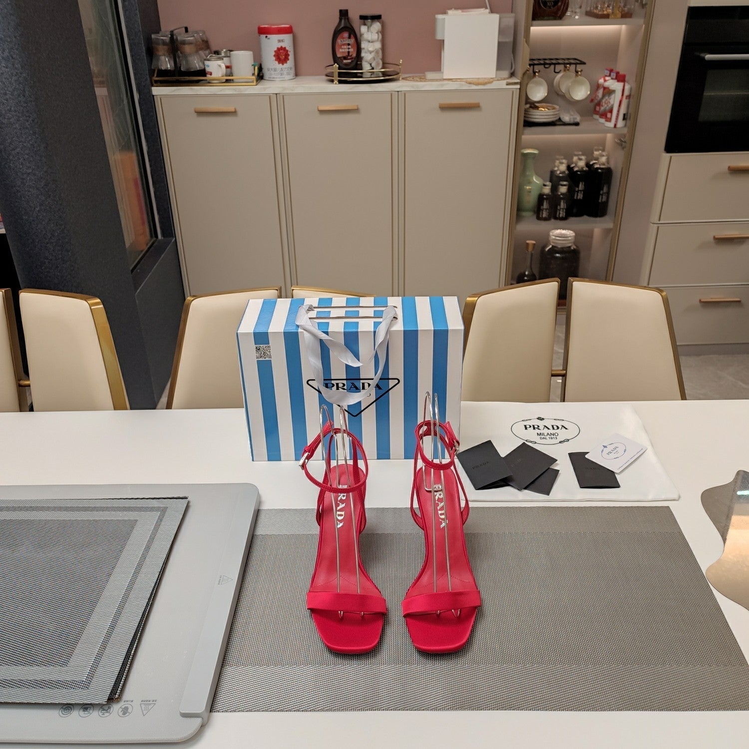 PRA TRIANGLE HEEL SATIN SANDALS CRIMSON