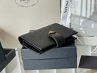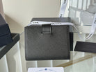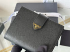 Pra 1MV204 Small Wallet Black Gold Tone Saffiano & Smooth Leather