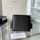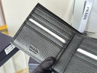 Pra 2M0513 Logo-Debossed Wallet 11cm Black lychee-grained cowhide