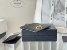 Pra Gold Logo-Stamp Card Holder Black Saffiano Leather