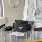 Pra Metal Logo-Plaque Card Holder Black Saffiano Leather