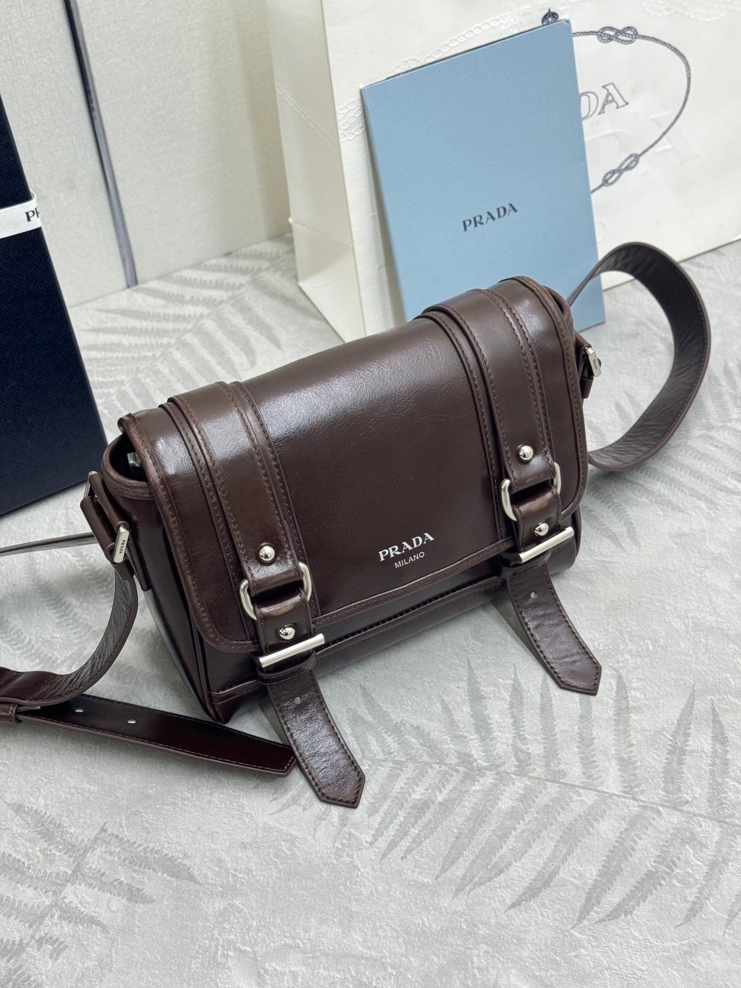 Prada 25AW Men's Saddle Bag 22 Coffee Leather