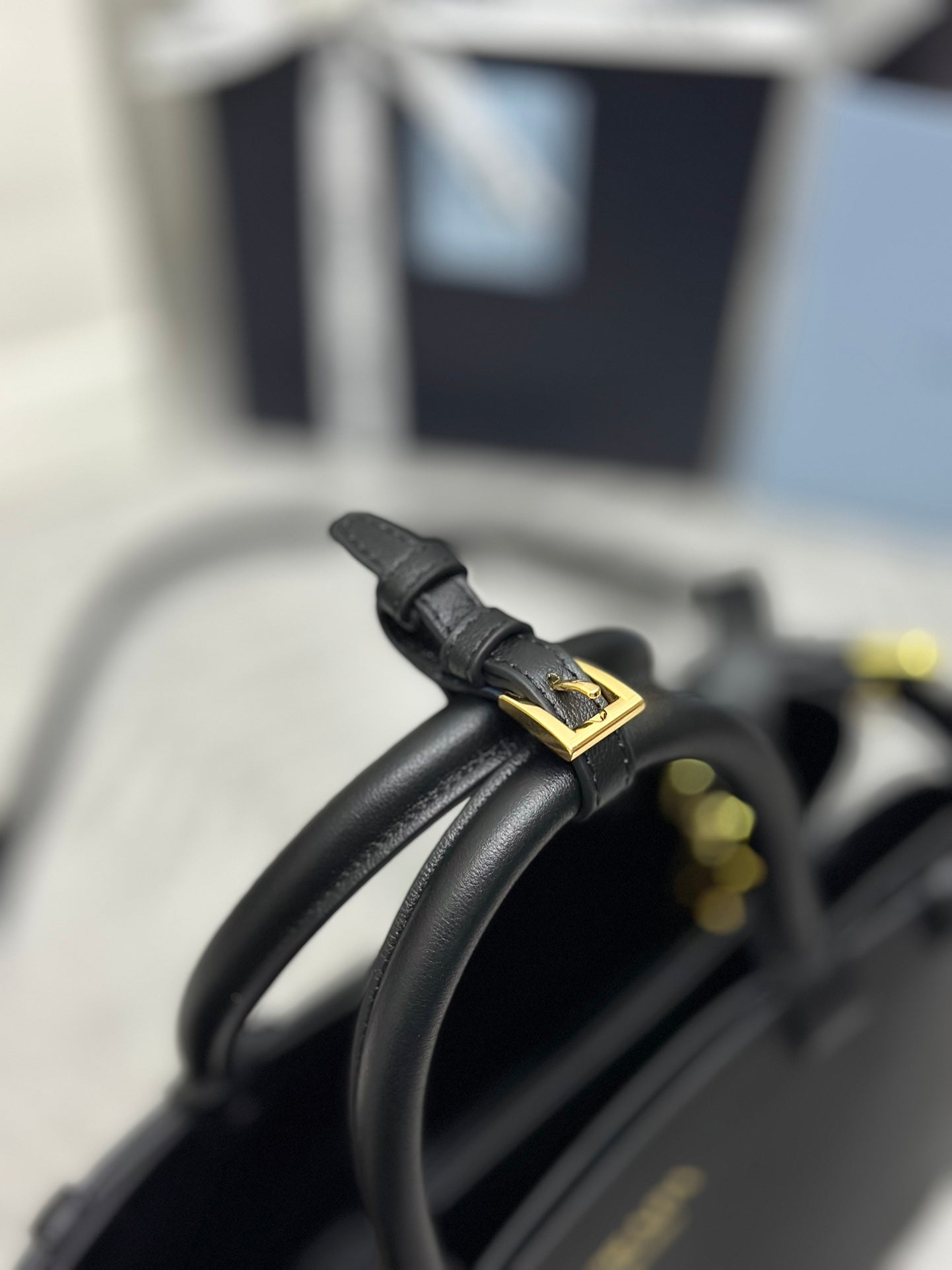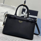 Prada Buckle Tote Bag 28cm Black Grain Cowhide