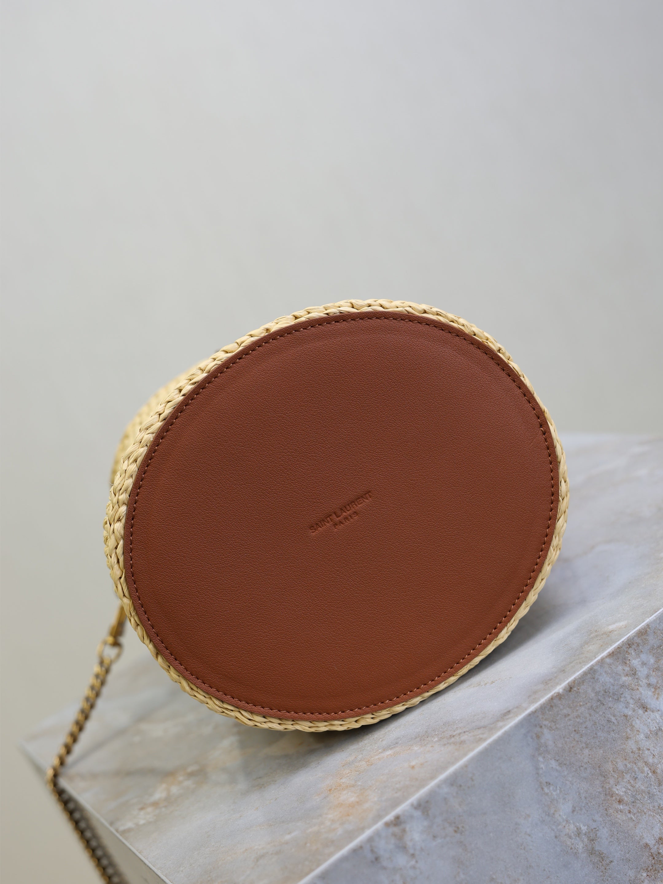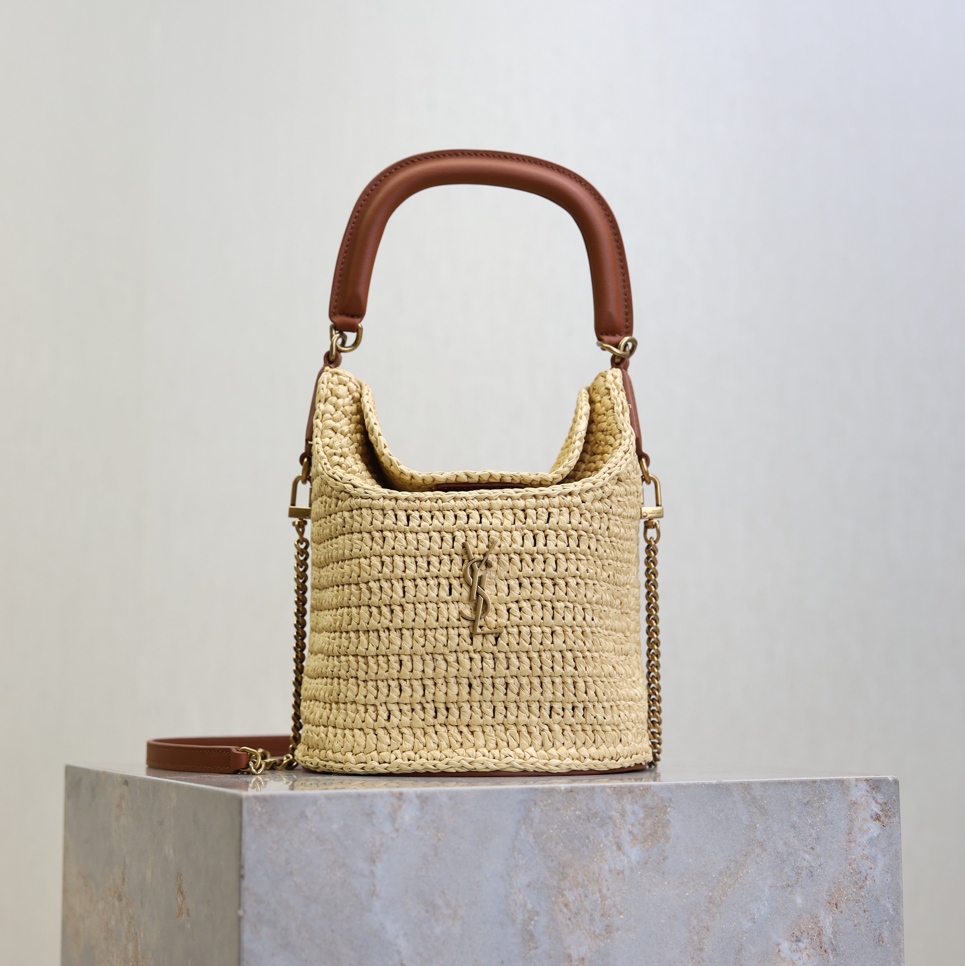 Prada GabyBucket 17cm Brown Beige Raffia Leather GHW
