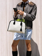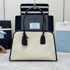 Prada Linen Medium Tote Bag Soft Grain Leather & Canvas