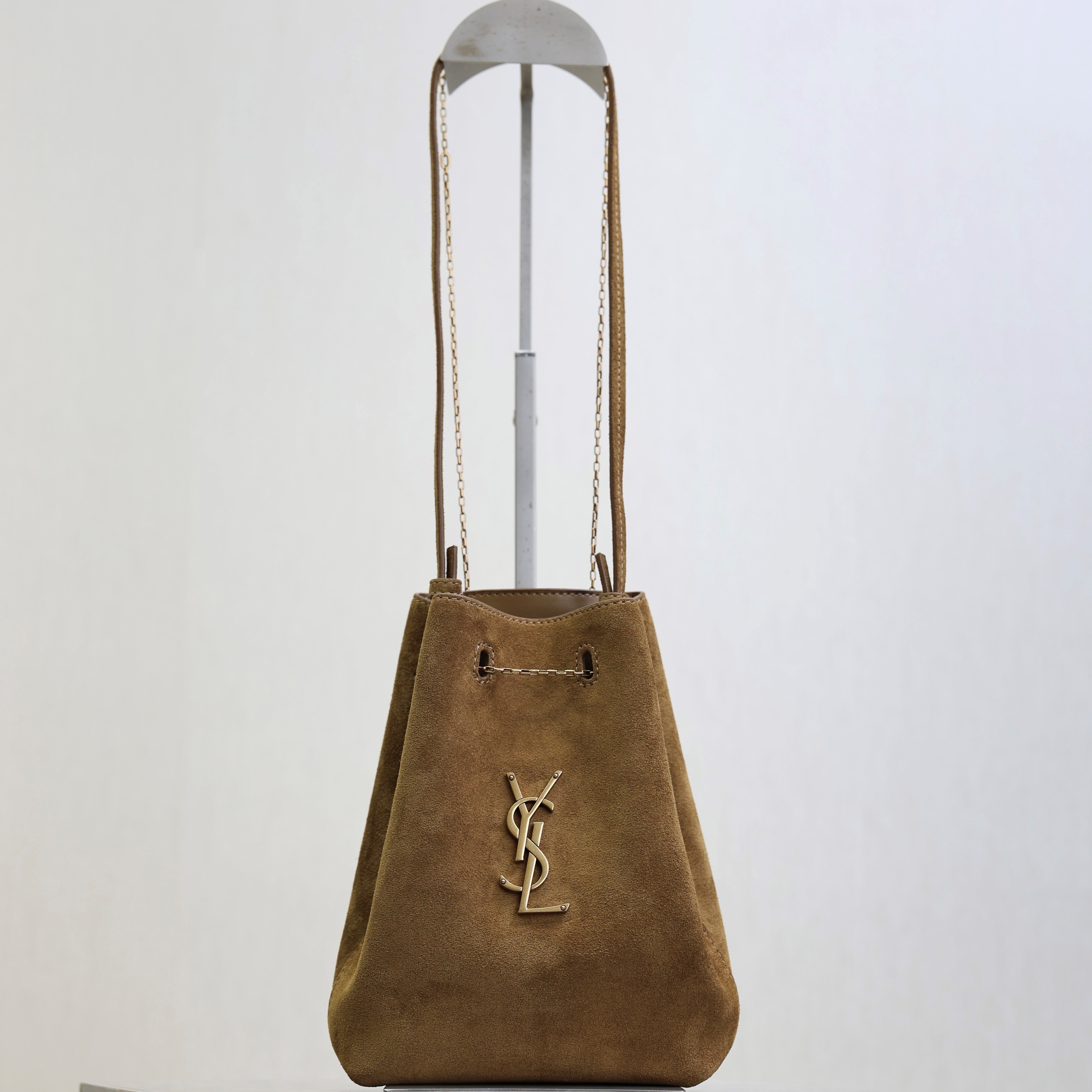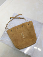 Prada Pochon Bucket Bag 20cm Brown Suede Bronze-Tone HW