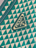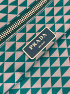 TOTE BAG 33 IN FOREST GREEN MIX CREAM TRIANGLE PATTERN EMBROIDERED FABRIC