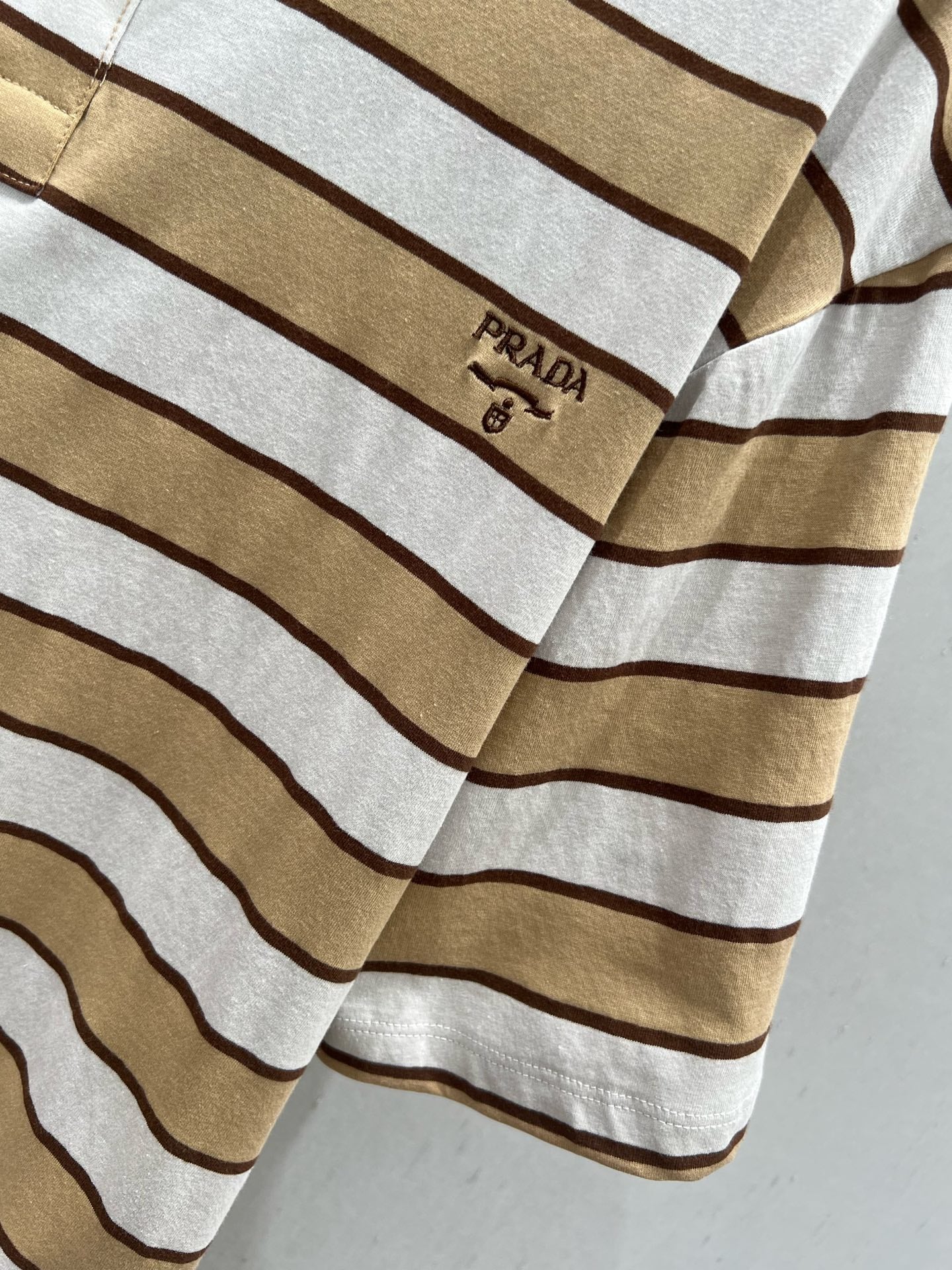 Prada 25 Striped Polo T-shirt White Brown cotton 210428