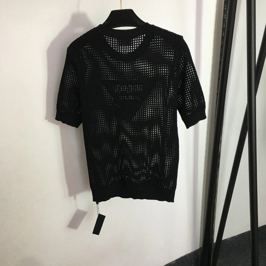 PRADA 25S SHORT-SLEEVE MESH KNIT PULLOVER SWEATER 291