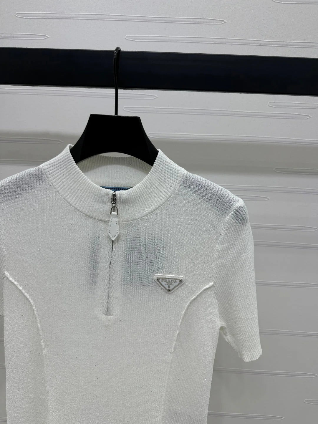 PRADA MOCK NECK SHORT-SLEEVE KNIT TOP WHITE 274815