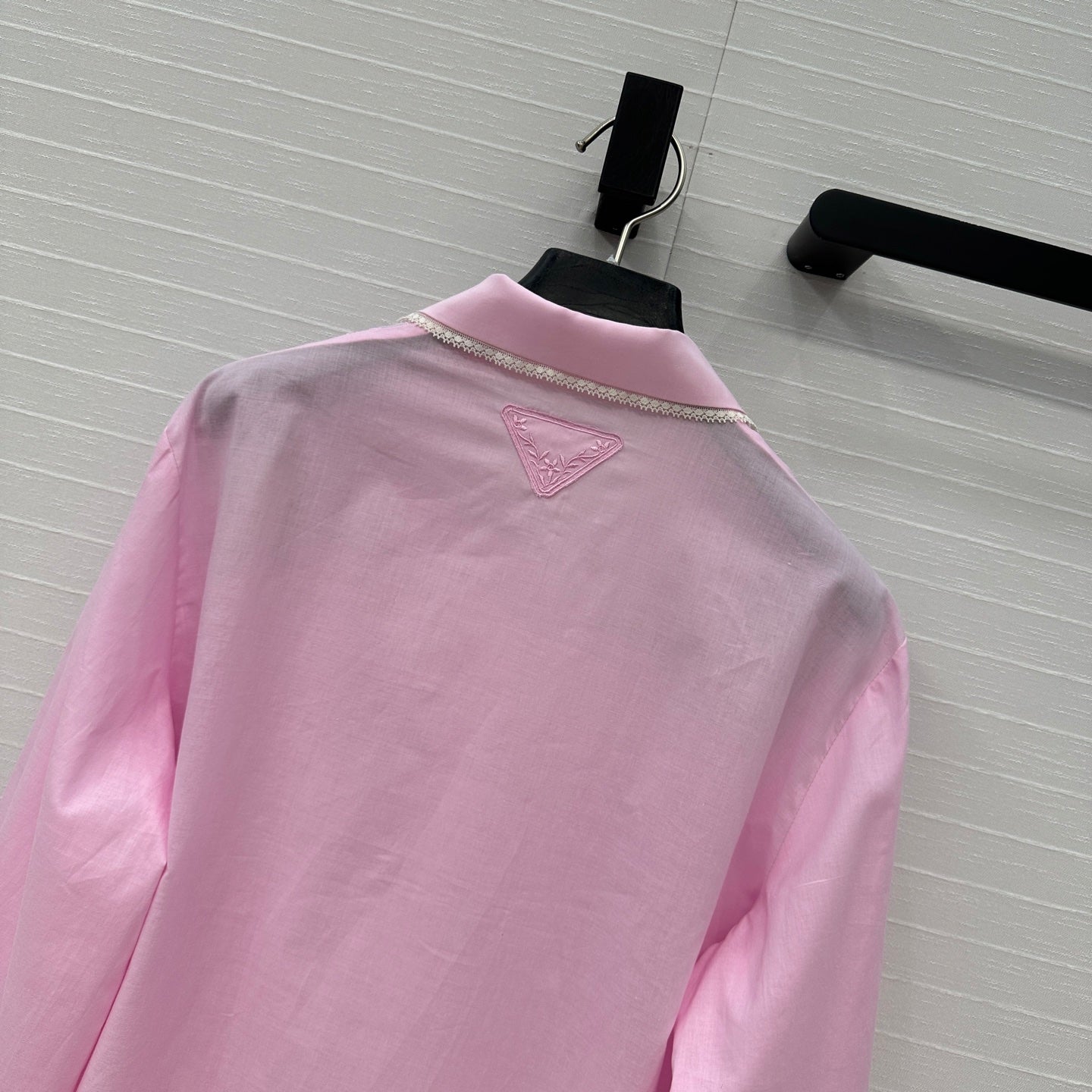 Prada 25 Lace Short-sleeved Shirt Pink Cotton