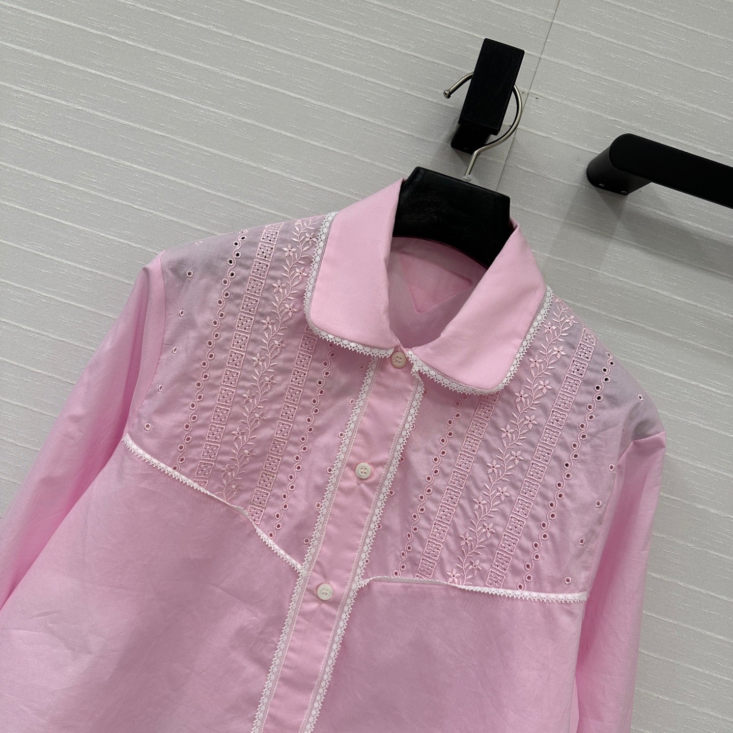 Prada 25 Lace Sleeve Shirt Pink Cotton