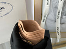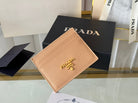 Pra Gold Logo-Stamp Card Holder Beige Saffiano Leather