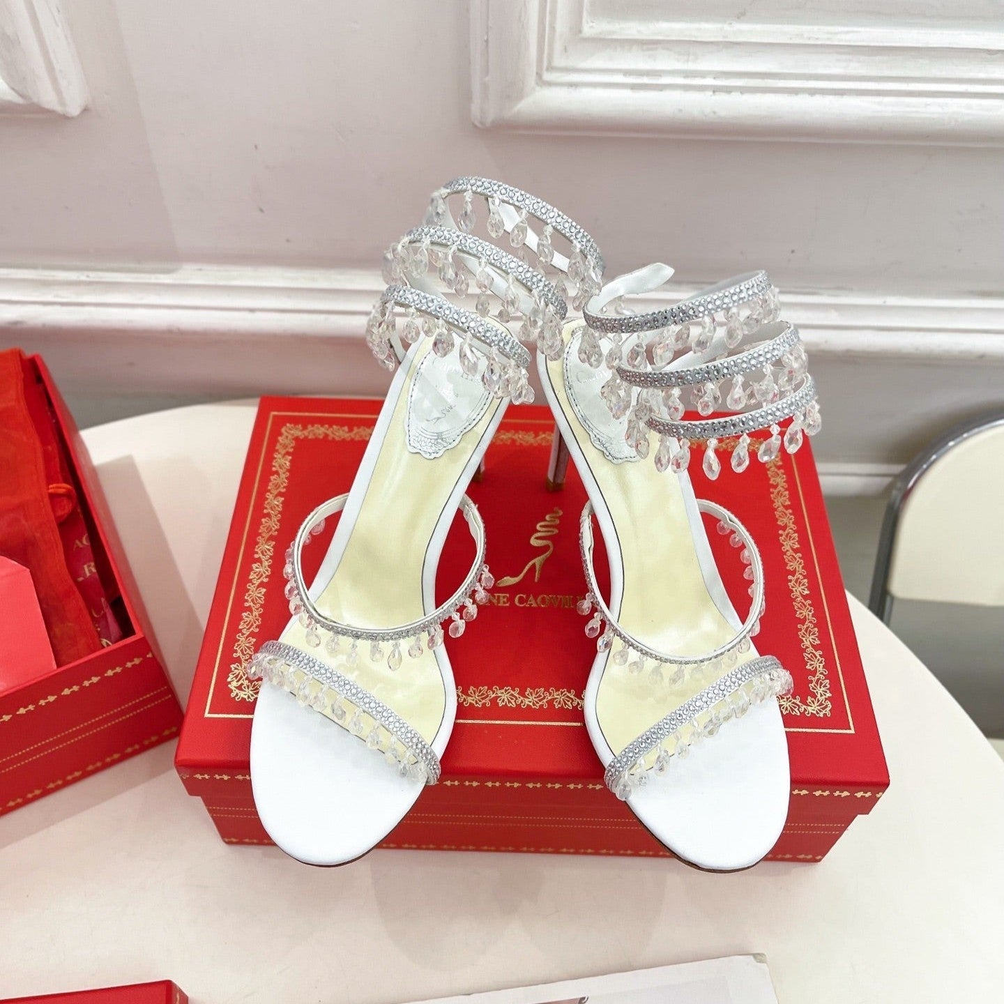 RC 25 Crystal Tassel High-Heeled Sandals White Silk Crystal Diamond 253540