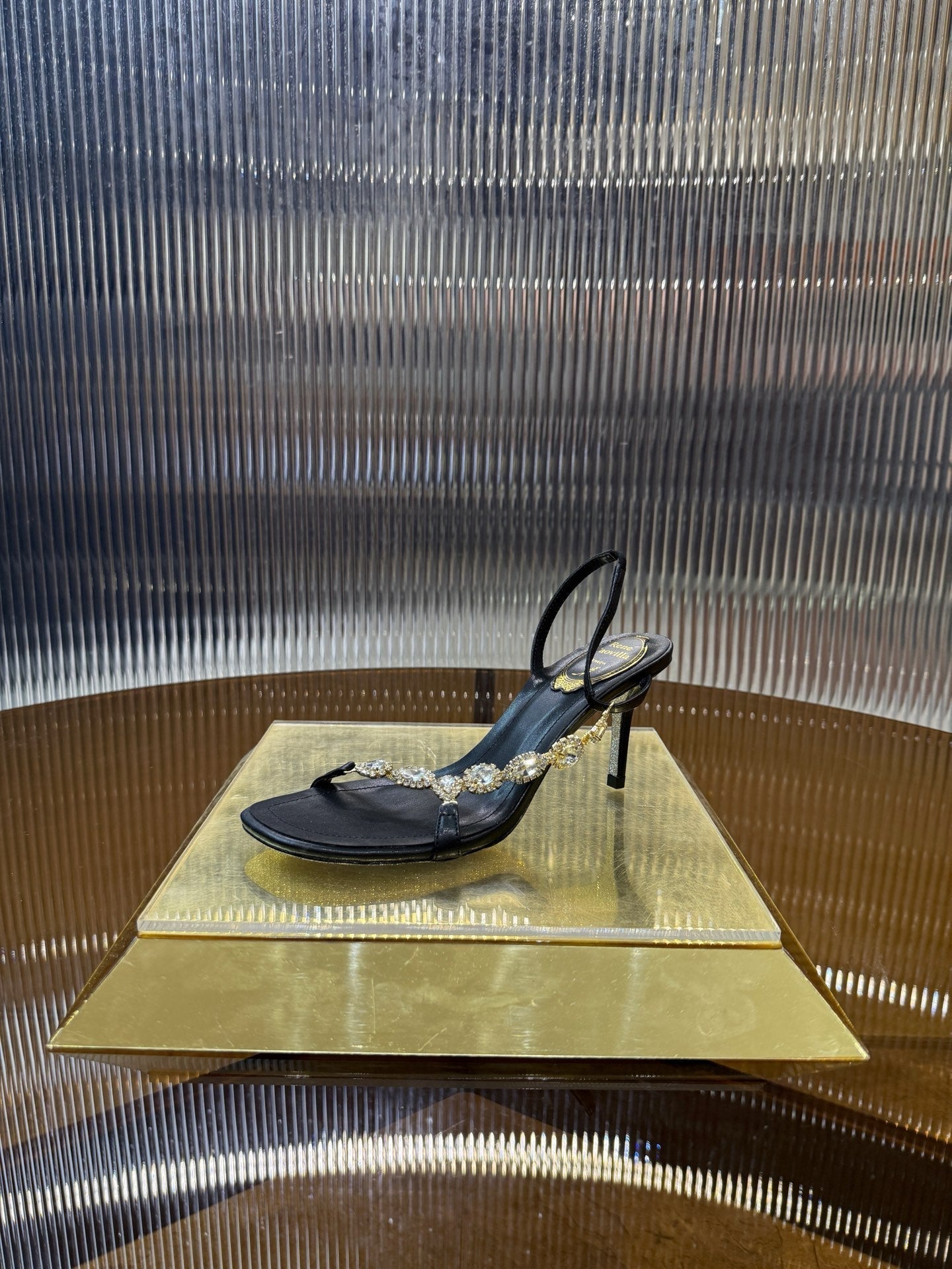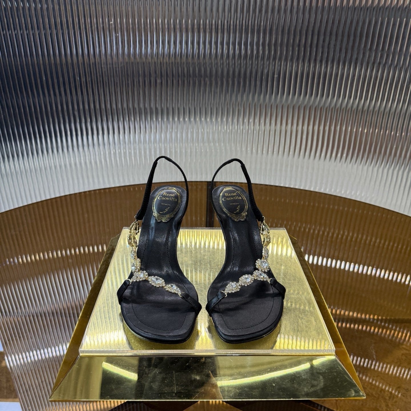 RC 25C Diamond Sandals Black Sheepskin Rhinestones 314825